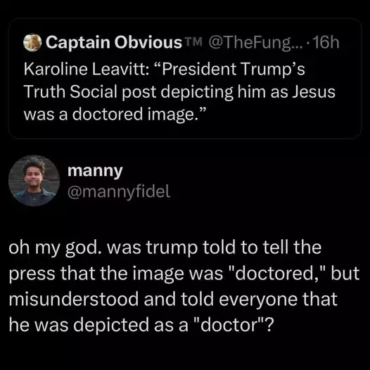 The online community was taken aback this week when a controversial image surfaced on President Donald Trump’s Truth Social platform, depicting him as Jesus Christ. The post quickly went viral, sparking heated debates and widespread skepticism about its authenticity. The image in question shows a doctored photo of Trump dressed in robes, with a halo and rays of light emanating from his head—an obvious attempt to portray him in a divine light. Captioned simply with a provocative message, the post prompted a deluge of responses ranging from supportive admiration to outright ridicule. Many users questioned whether the image was genuine … Read more