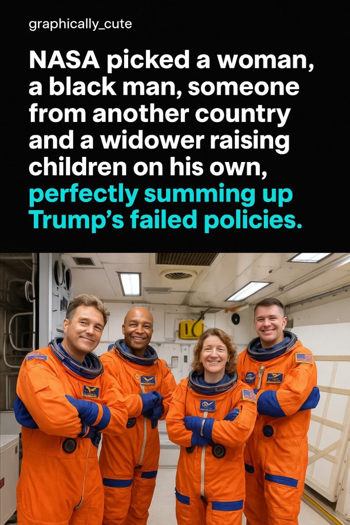 In a recent social media post that quickly went viral, an image summed up significant discussions around diversity, representation, and political leadership through NASA’s latest astronaut selections. The post highlights NASA’s decision to pick an alpha woman, an alpha Black man, an individual from another country, and a widower single-handedly raising his children. Many viewed this as a powerful statement about inclusion and diversity, while also drawing contrasts with the policies of former President Donald Trump. The image, originally shared by the social media user graphically_cute, juxtaposes NASA’s choices with critiques of what they call “Trump’s failed policies.” It encapsulates … Read more