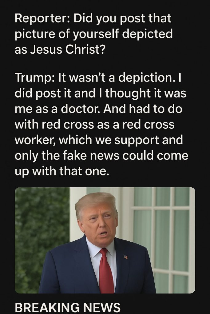 In a striking revelation that has captured the attention of social media users and political commentators alike, former President Donald Trump recently admitted to posting an image that depicted himself as Jesus Christ. The admission came during a brief exchange that quickly went viral, fueling intense debate across platforms. The controversy began when a question surfaced online asking, “Did you post that picture of you depicted as Jesus Christ?” Trump responded without hesitation: “It was me. I did post it, and thought it was me as a doctor. Only the fake news could come.” This statement has since sparked widespread … Read more