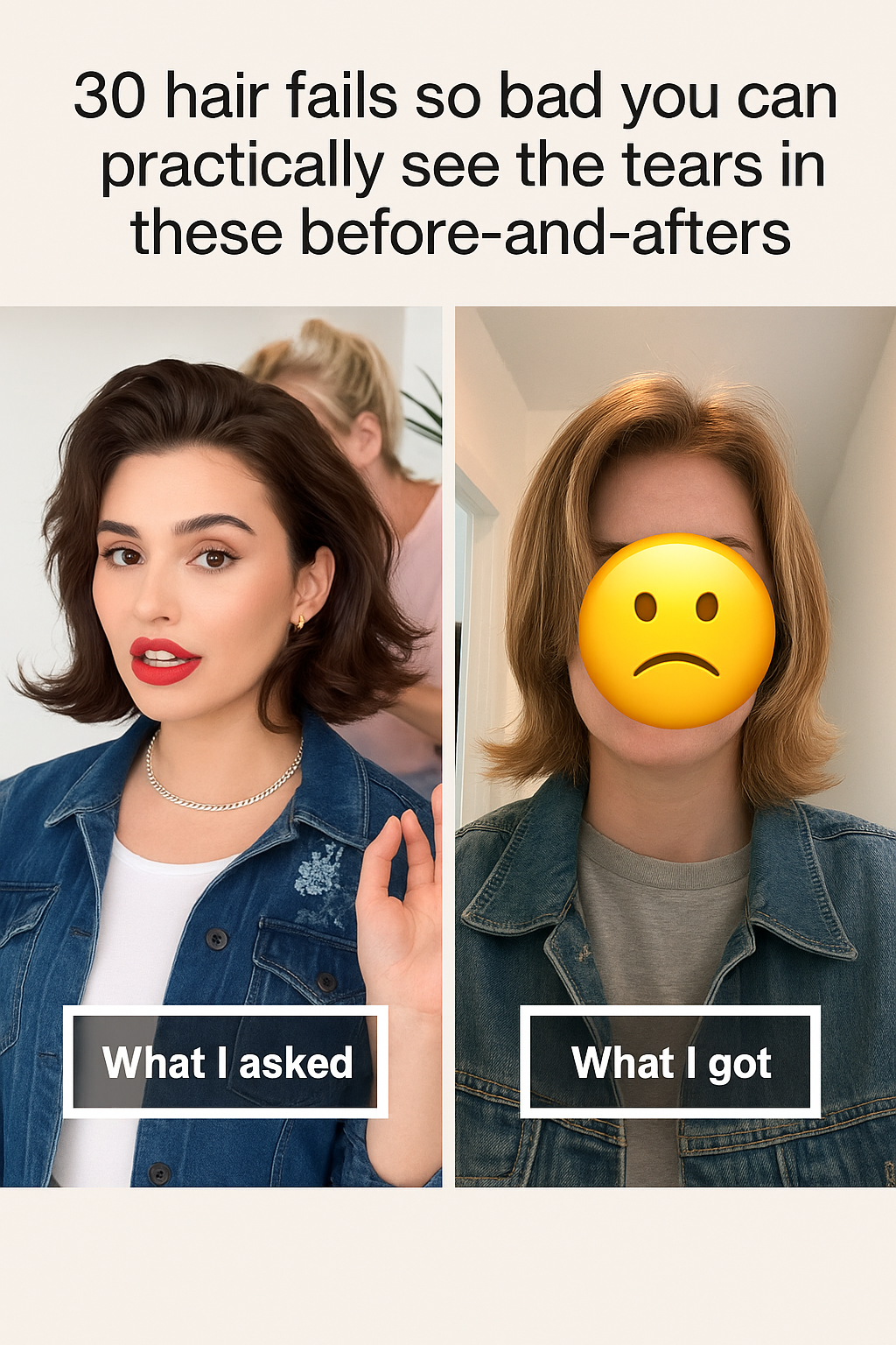 Common in these viral photos is a phrase that’s become a cultural shorthand for hair-related disappointment: “What I asked for vs. What I got.” Often paired with candid snapshots, the expression encapsulates the frustration of clients who sat in salon chairs with hopeful anticipation only to leave with looks wildly different — and often far worse — than their requests.