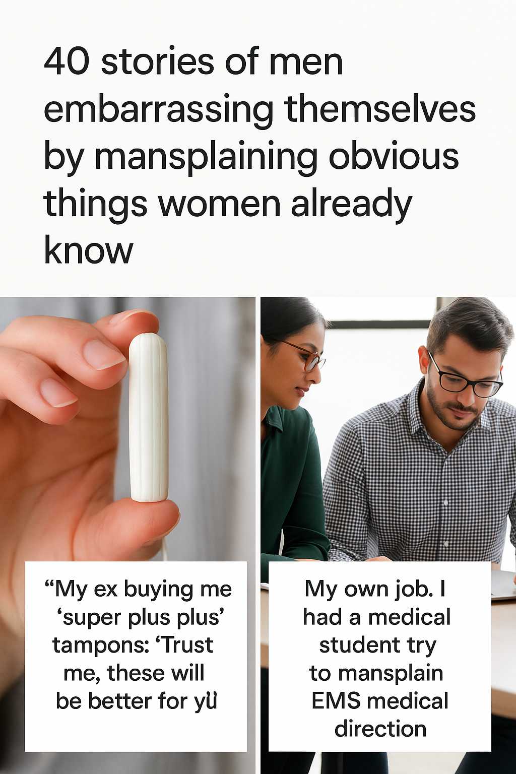 In 2024, a new viral trend is shining a humorous yet revealing light on the everyday phenomenon of mansplaining, especially when it comes to things women already know very well—like tampons. A viral social media post titled “40 stories of men embarrassing themselves by mansplaining obvious things women already know” has captured the attention of thousands, sparking laughs, eye rolls, and a larger conversation about gender dynamics and communication.