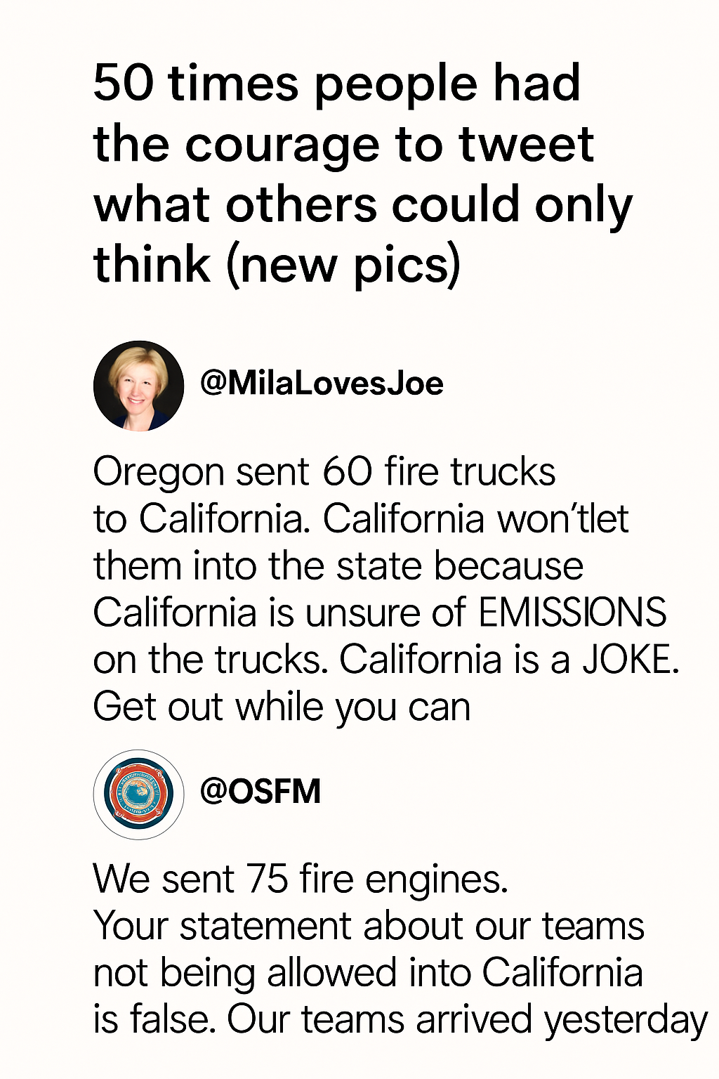 Among the viral tweets that have caught public attention is a remarkable shoutout to the state of Oregon’s emergency response team, which recently sent 60 fire trucks to assist California during its devastating wildfire season in 2024. Oregon’s outpouring of support stands as a powerful example of solidarity in times of crisis, and social media users have been quick to recognize and applaud the courage behind this humanitarian effort.