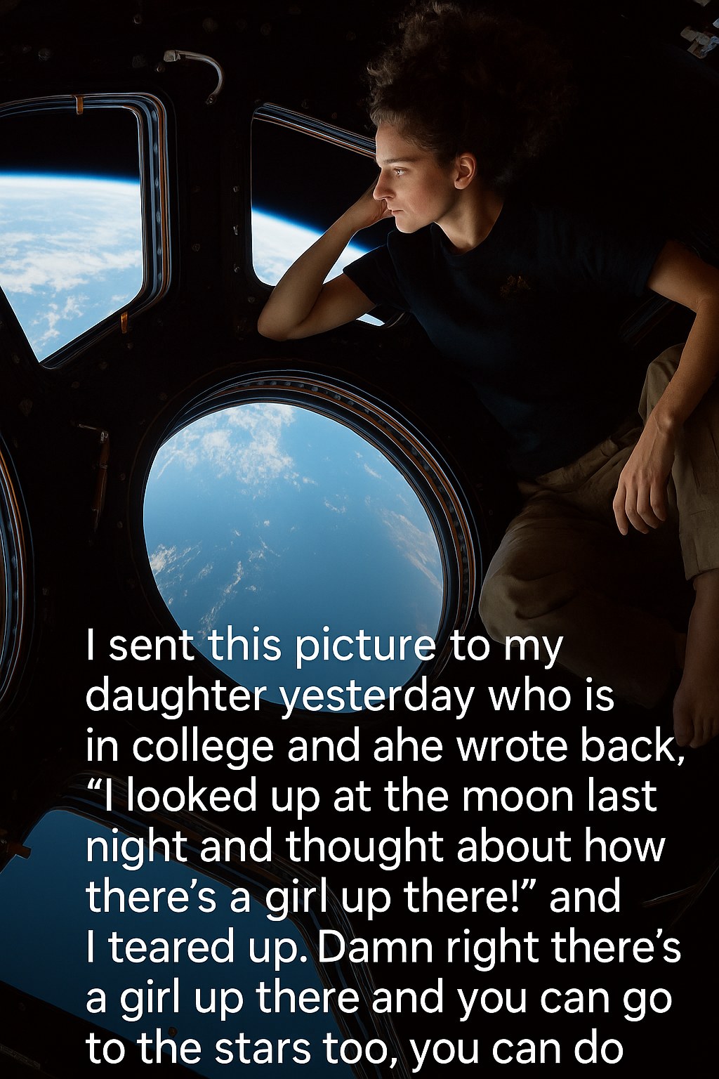 In the fast-paced world of social media where moments often flash by unnoticed, a simple yet profound exchange between a mother and her college-aged daughter has captured the hearts of thousands online. The story began with a mother sending her daughter a picture of the moon, accompanied by a warm message. The daughter’s reply, a touching reflection, read: “Looked up at the moon last night and thought about how there’s a girl up there!”