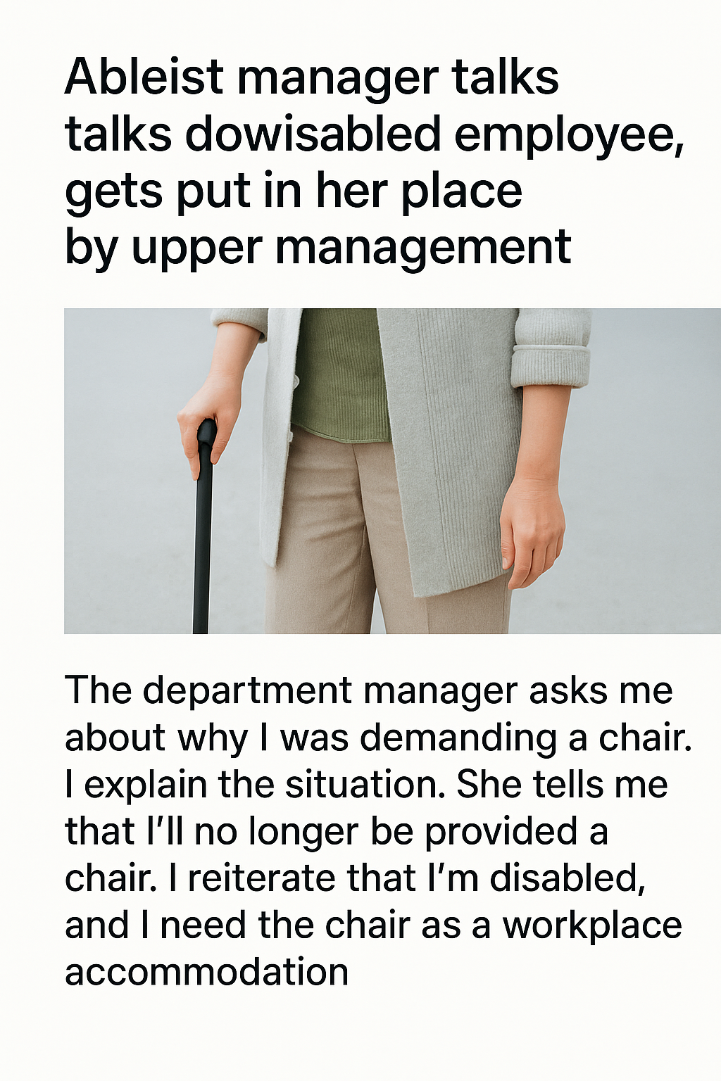 In a recent workplace incident that has sparked conversations across social media platforms, a department manager’s ableist behavior toward a disabled employee was swiftly addressed by upper management, highlighting the growing emphasis on workplace inclusivity and respect.