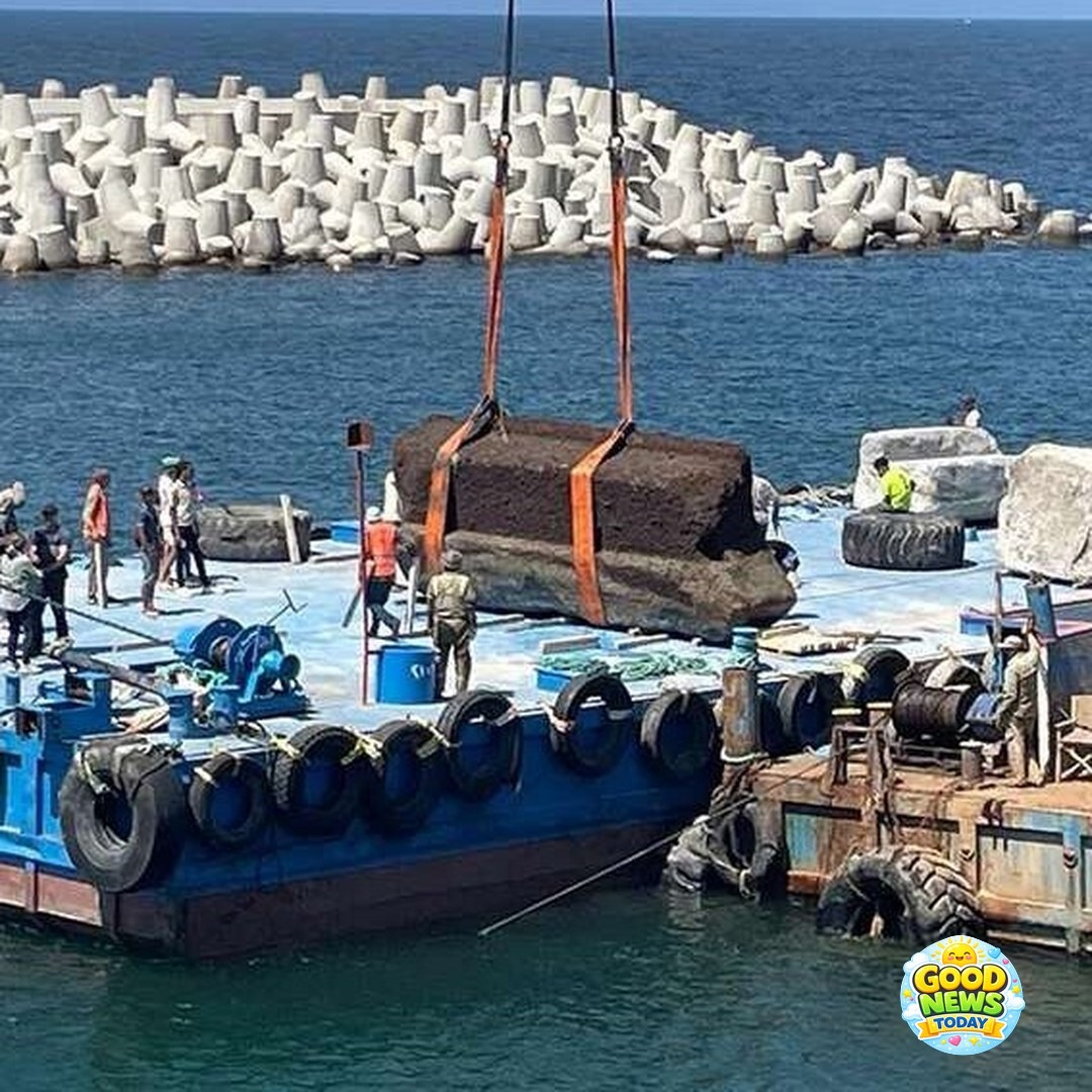 Recently, an incredible discovery was made as 22 massive granite blocks, once part of the Great Lighthouse of Alexandria, were successfully retrieved from the depths of the city’s ancient harbor. Each of these impressive blocks weighed several tons and included upright pillars, frames, and crossbeams, known as lintels, that once graced the entrance of this iconic structure.