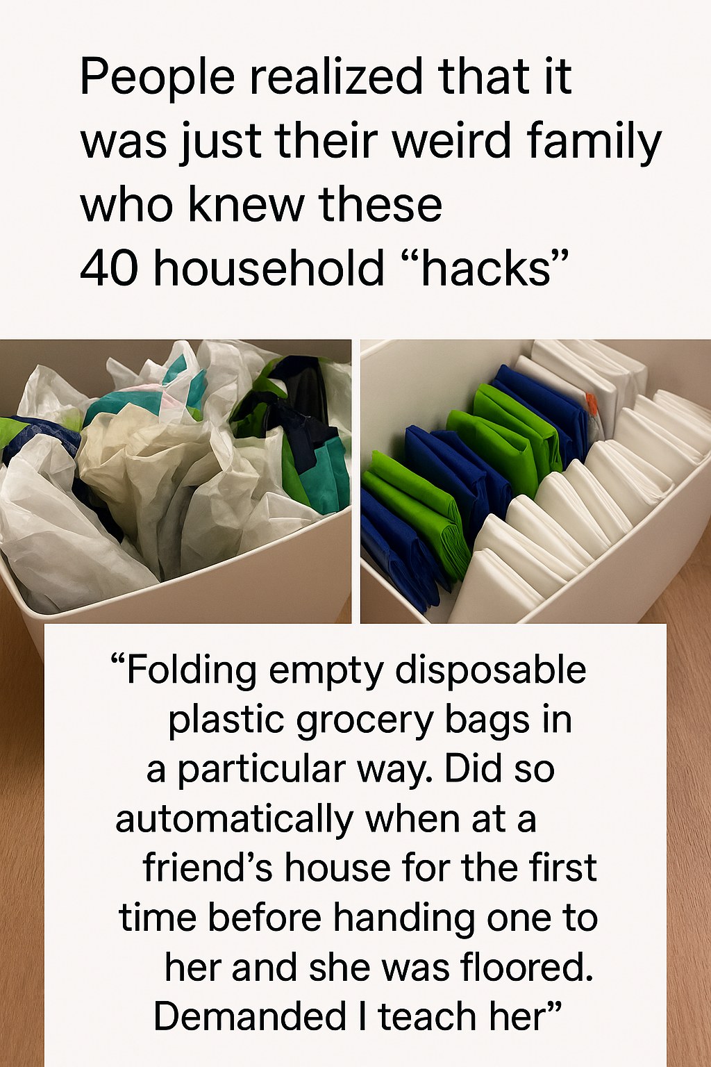 Among the hacks highlighted, one stands out for its unusual yet practical nature: the specific way to fold empty disposable plastic grocery bags. While some might see this as mere tidiness, others grew up with it being a standard practice in their homes—an endearing reminder of their unique upbringing. As the post circulated widely, social media users began to share their own similar experiences, with an outpouring of comments reflecting both amusement and surprise.