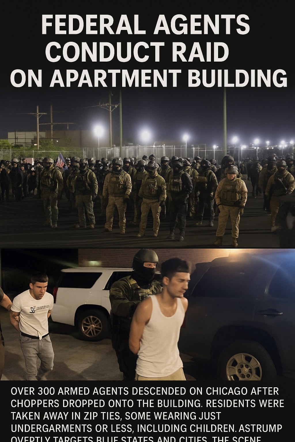 In a shocking and unprecedented operation, approximately 300 ICE agents descended on an apartment building in Chicago, deploying from Blackhawk helicopters in a scene reminiscent of a dystopian novel. Witnesses reported a chaotic atmosphere as agents rounded up residents, with many individuals, including children, being pulled outside in zip ties, often clad in little or no clothing. The operation raises serious questions regarding the use of federal power in cities that oppose the current administration.
