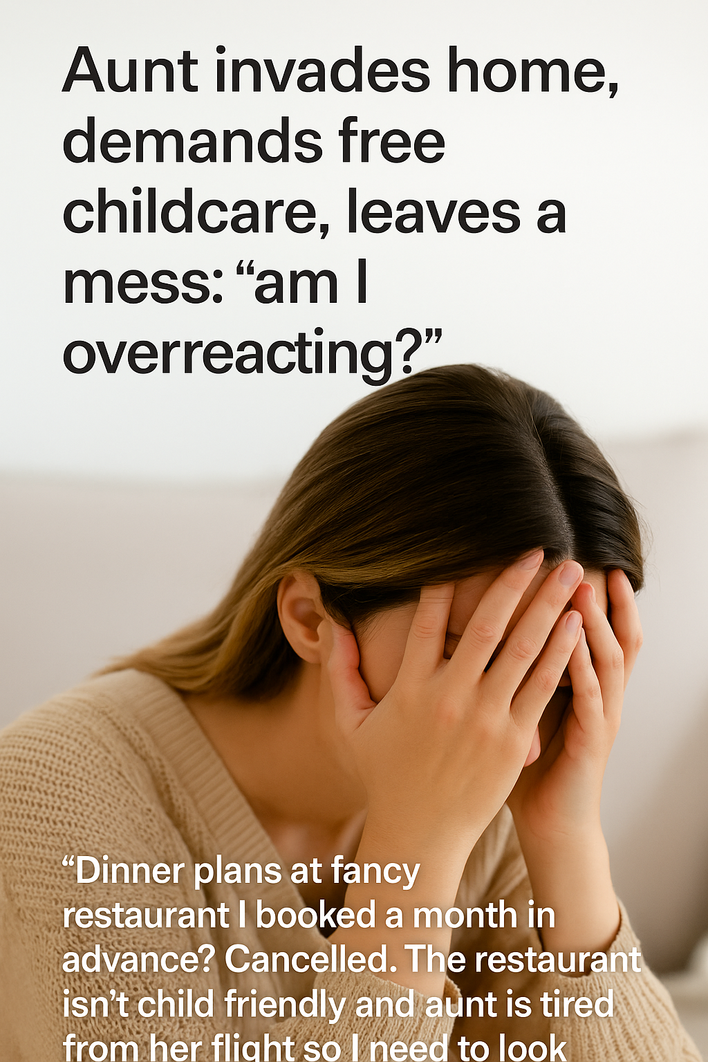 “I had dinner plans at a nice restaurant that I booked a month ago to celebrate my birthday,” the woman explained in her post. “Then my aunt just walks in and insists I hand over the kids to her, saying ‘I’ll watch them for you today.’ I felt cornered and uncomfortable, but she didn’t take no for an answer.”