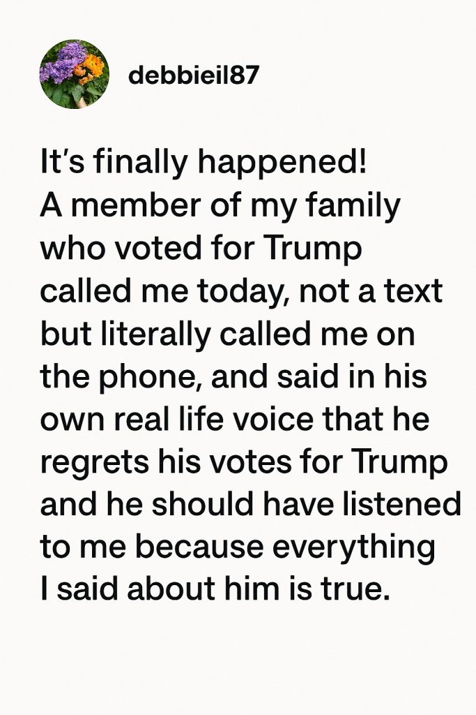 In a moment that has captured the attention of social media users nationwide, a personal story shared by Instagram user debbieil87 has sparked conversations about political divides, family bonds, and the power of open dialogue. According to the viral post, “It’s finally happened! A member of my family who voted for Trump called me today, not a text but literally called me on the phone,” she wrote, highlighting the rarity and significance of the gesture. The intimate act of picking up the phone, rather than sending a quick text or avoiding contact altogether, struck a chord for many who have