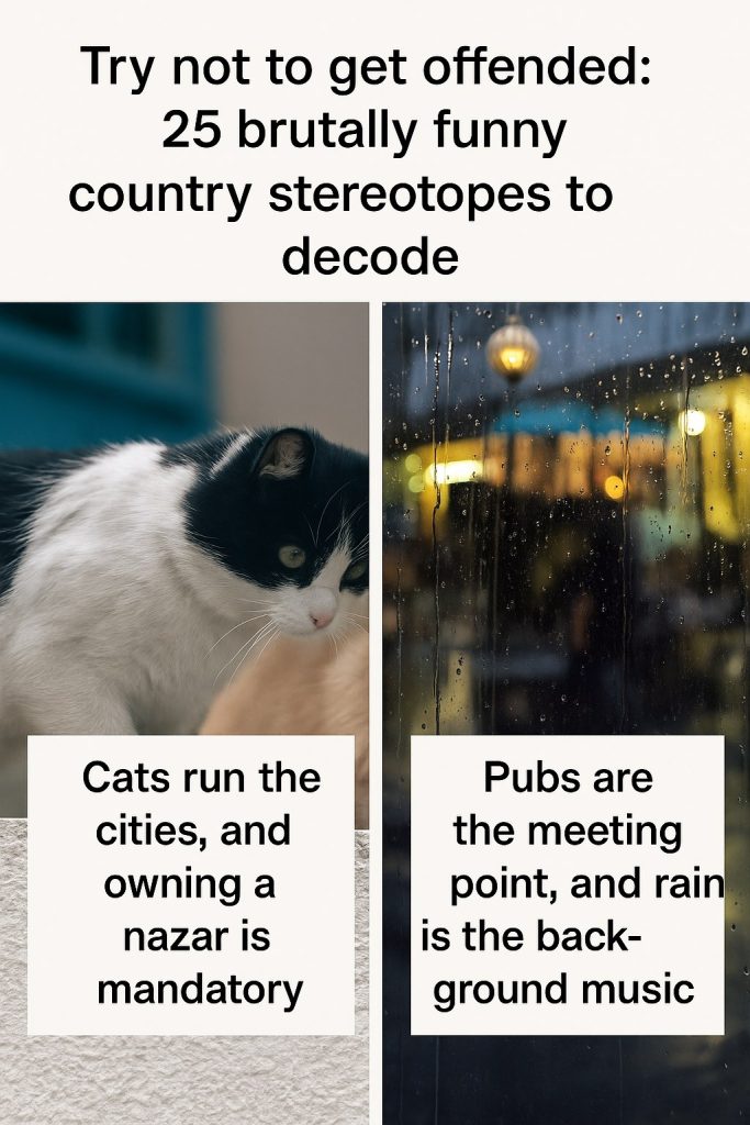 In today’s fast-paced digital world, viral content often walks a fine line between humor and controversy. The latest trend making waves across social media is a collection titled “Try Not to Get Offended: 25 Brutally Funny Country Stereotypes to Decode.” This playful yet razor-sharp list pokes fun at common cultural clichés from around the globe, blending humor with a touch of truth — all while reminding us to keep an open mind. The list features quirky, relatable stereotypes such as “Cats run the cities, and owning a nazar is mandatory,” a humorous nod to certain cultural traditions and daily life