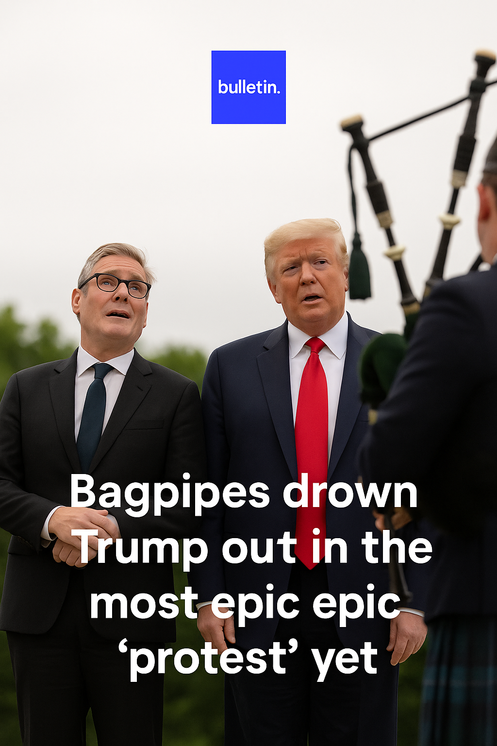 The bagpipes are a cultural symbol most closely associated with Scotland and are often used in ceremonies, protests, and traditional events within the United Kingdom. On this occasion, their loud presence could be interpreted in multiple ways—from an expression of local identity and pride to a subtle form of dissent. While specific organizers of the bagpipe performance have not come forward, social media quickly dubbed it the “most epic protest yet,” highlighting both the novelty and impact of the moment.