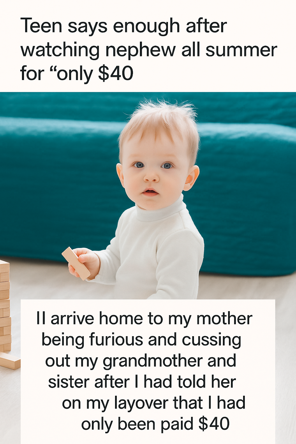 “I watched my nephew all summer,” she explained in a viral post, “and the entire payment was just $40. I honestly expected a little more respect for my time and effort.” The post quickly gained traction as thousands of users weighed in, with many sympathizing with the teen while others debated family obligations and the expectations placed on young relatives.