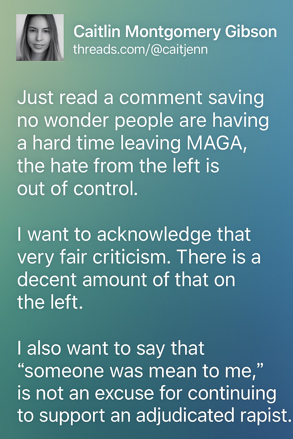 The conversation sparked by Caitlin Montgomery Gibson’s post acts as a timely reminder: Political discourse is not just about policies or parties—it’s about human beings who crave respect and understanding, even as they reassess their beliefs.