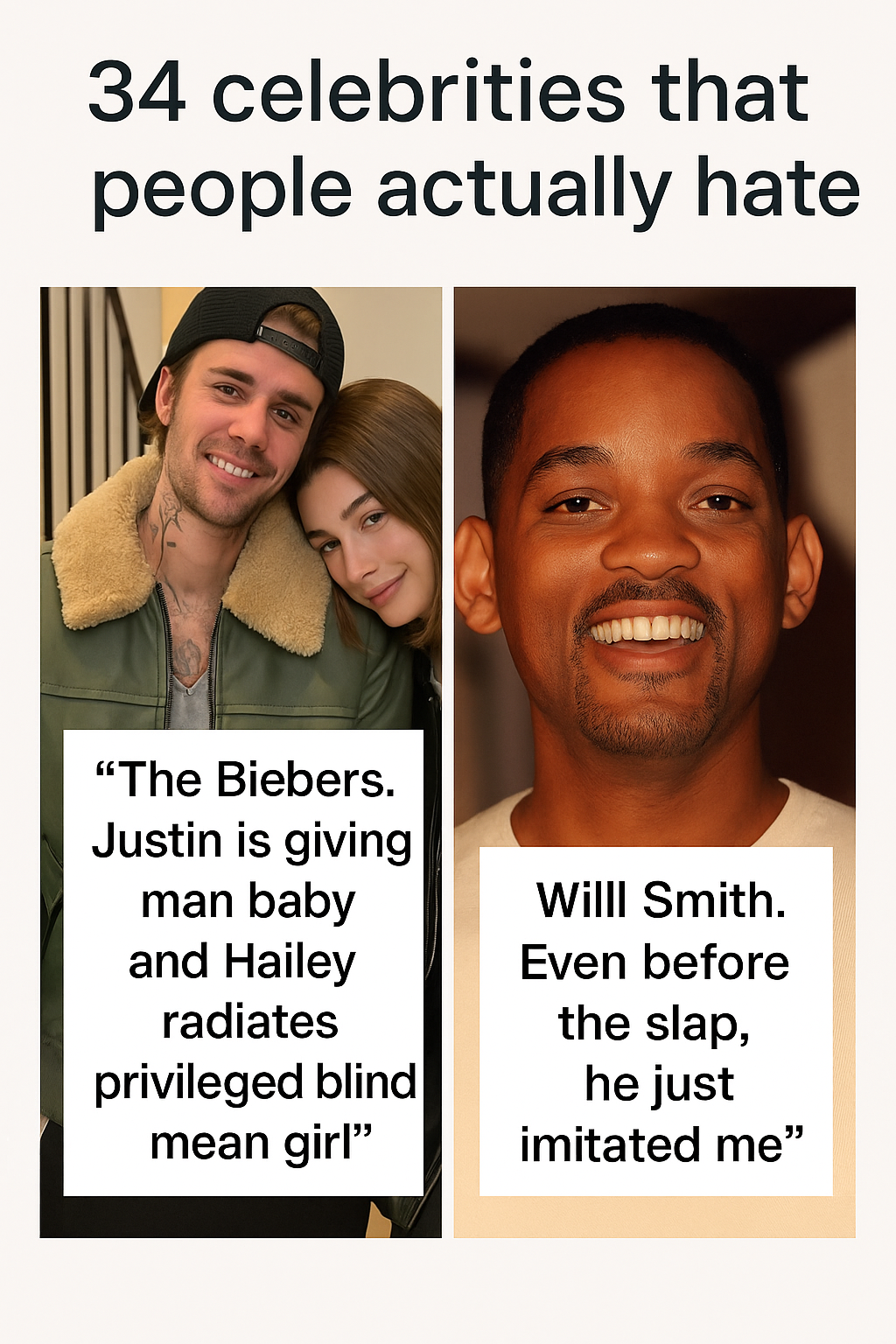 In 2024, the glare of the spotlight has proven both a blessing and a curse for some of the world’s most prominent celebrities. A recent social media-driven compilation of “34 celebrities that people actually hate” has reignited debates about public perception, celebrity behavior, and media influence. Among the names topping this list are Justin Bieber, Hailey Bieber (formerly Baldwin), and Will Smith—figures once adored by millions but now facing widespread public scrutiny.