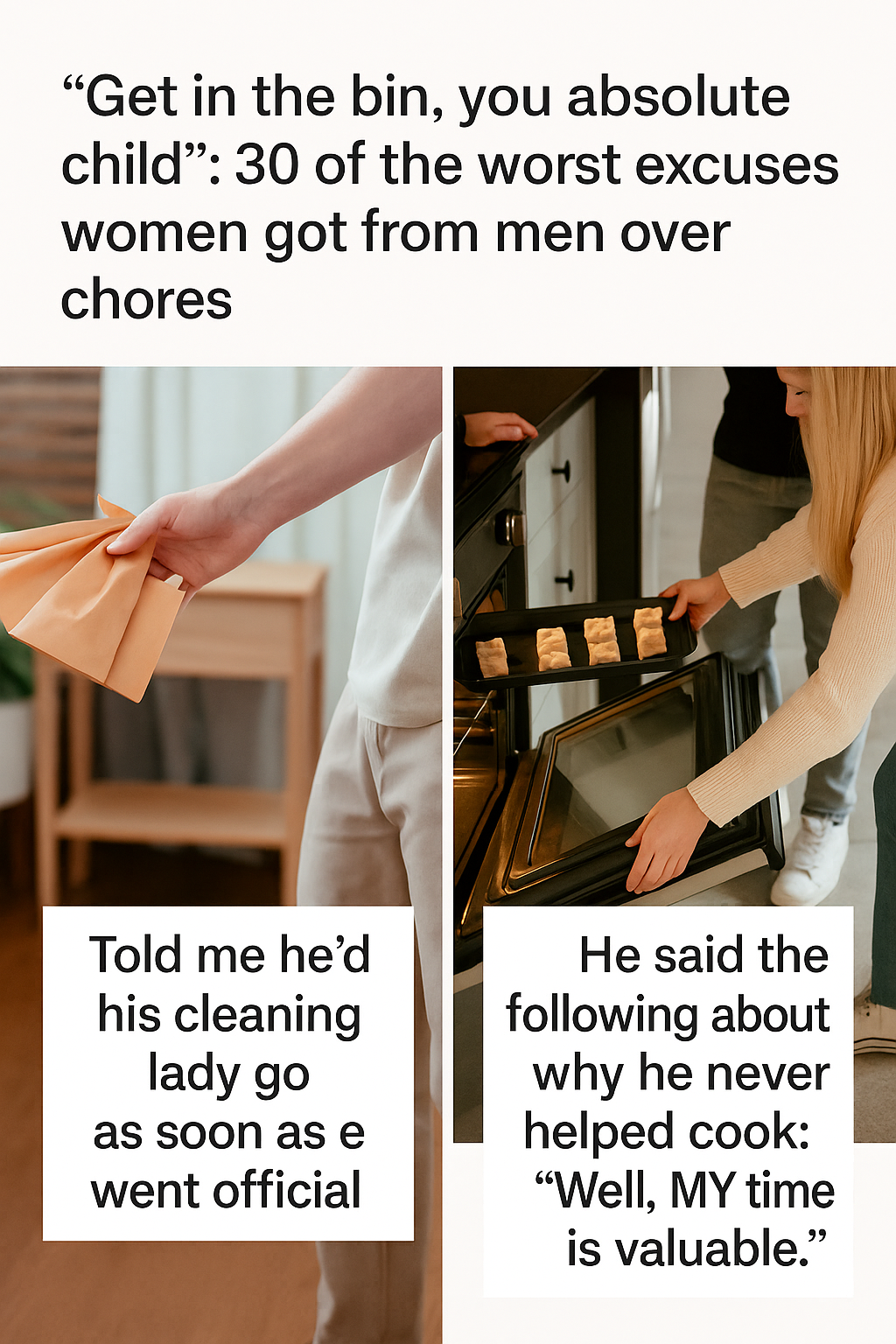 In 2024, the age-old debate over household chores remains a hot-button issue, igniting fierce discussions on social media worldwide. A viral post titled “Get in the bin, you absolute child”: 30 of the worst excuses women got from men over chores has captured widespread attention by spotlighting the absurd and sometimes hilarious justifications men have offered to avoid their share of housework.