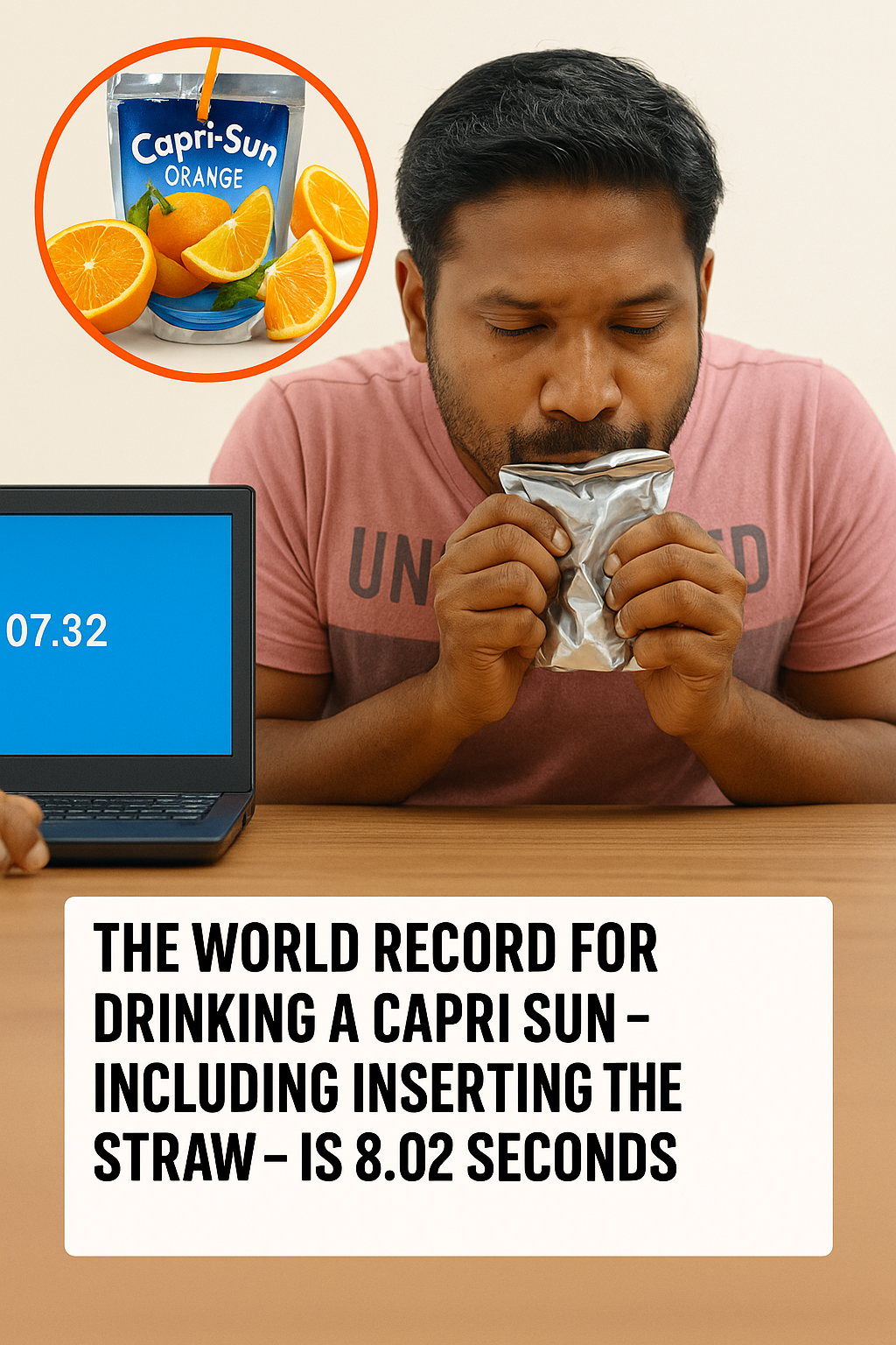 Fayis Nazer, the prolific Indian speed-drinker known for his eccentric and record-breaking feats, has once again captured global attention by reclaiming the Guinness World Record for chugging a Capri-Sun pouch — and he did it in a blistering 8.02 seconds. This latest achievement dramatically outpaces the previous official record of 10.41 seconds, setting a new benchmark in the unusual yet thrilling world of speed drinking challenges.
