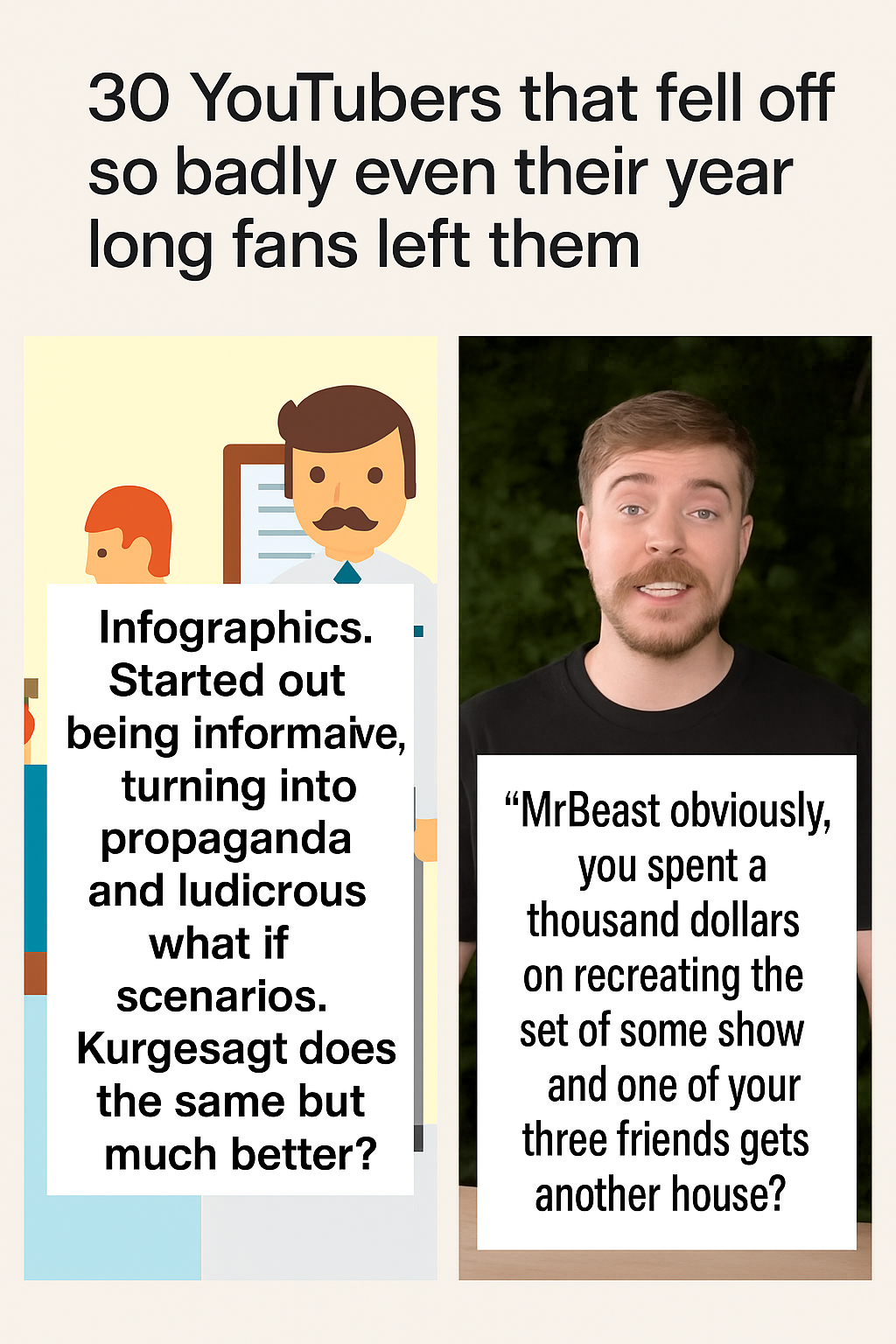 In the fast-evolving world of online video content, maintaining a loyal fanbase can be as challenging as growing one. A recent infographic that has been circulating on social media sheds light on a striking trend: 30 YouTubers who fell off so badly that even their year-long fans abandoned them. This revelation offers a compelling look into how creators, once celebrated for their informative content, have seen their audiences dwindle — largely due to perceived shifts in their messaging and content tone.