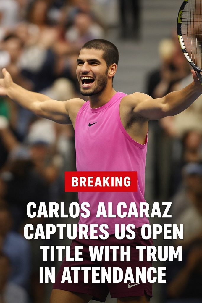 In a stunning display of youthful prowess and unyielding determination, Spanish tennis prodigy Carlos Alcaraz secured his second U.S. Open championship title on Sunday, besting Italy’s Jannik Sinner in a thrilling final that captivated fans worldwide. Adding to the match’s spectacle was the presence of former President Donald Trump, who watched the intense contest from the stands, underscoring the global appeal of this Grand Slam event.