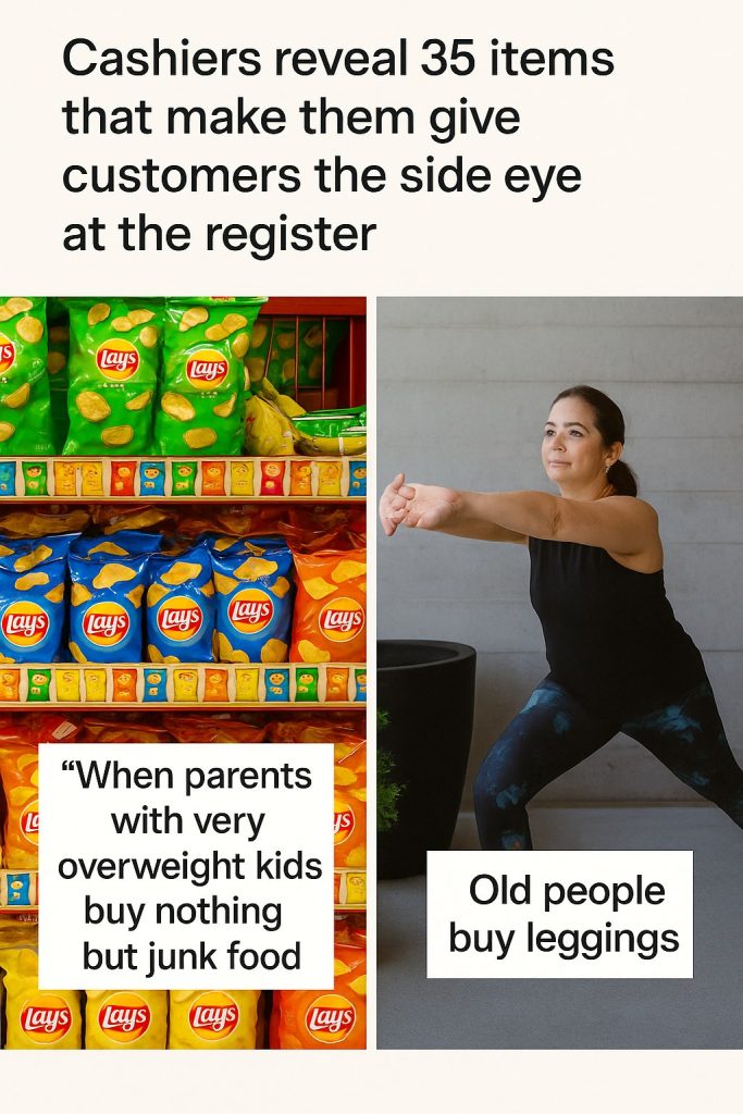 Odd Pairings: The list doesn’t stop at snacks. Others mentioned items like an industrial-sized container of mayonnaise combined with an assortment of frozen dinners—confusing choices that often left cashiers scratching their heads. One cashier compared the experience to being a therapist, saying, “You see people buy things that betray their attempts at healthy eating. It’s a struggle we all know too well.”
