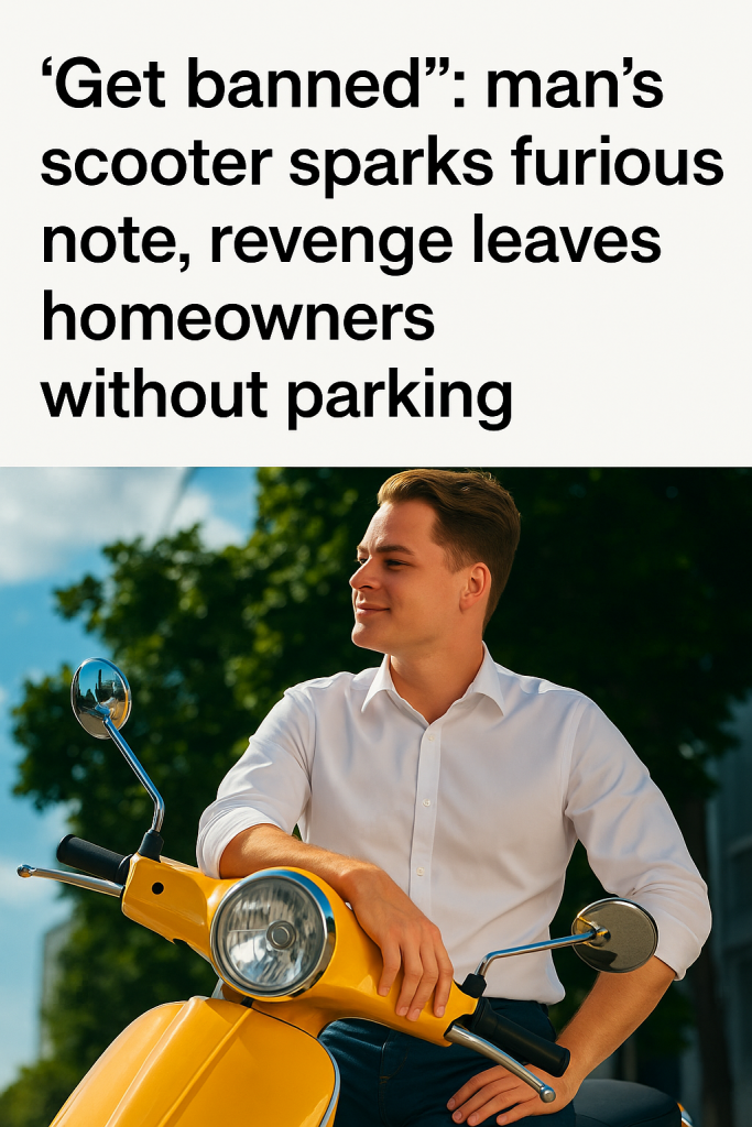 A seemingly minor parking dispute over a man’s scooter has erupted into a full-blown neighborhood feud, culminating in a dramatic act of revenge that has left homeowners without parking spaces. The conflict, which began with a furious note demanding the scooter owner be banned, escalated to what witnesses describe as a coordinated effort to block off several parking spots used by local residents. The saga reportedly started when a man parked his electric scooter in what some neighbors considered an improper spot — a shared residential parking area. A note left on the scooter’s handlebar read “Get banned”, expressing frustration