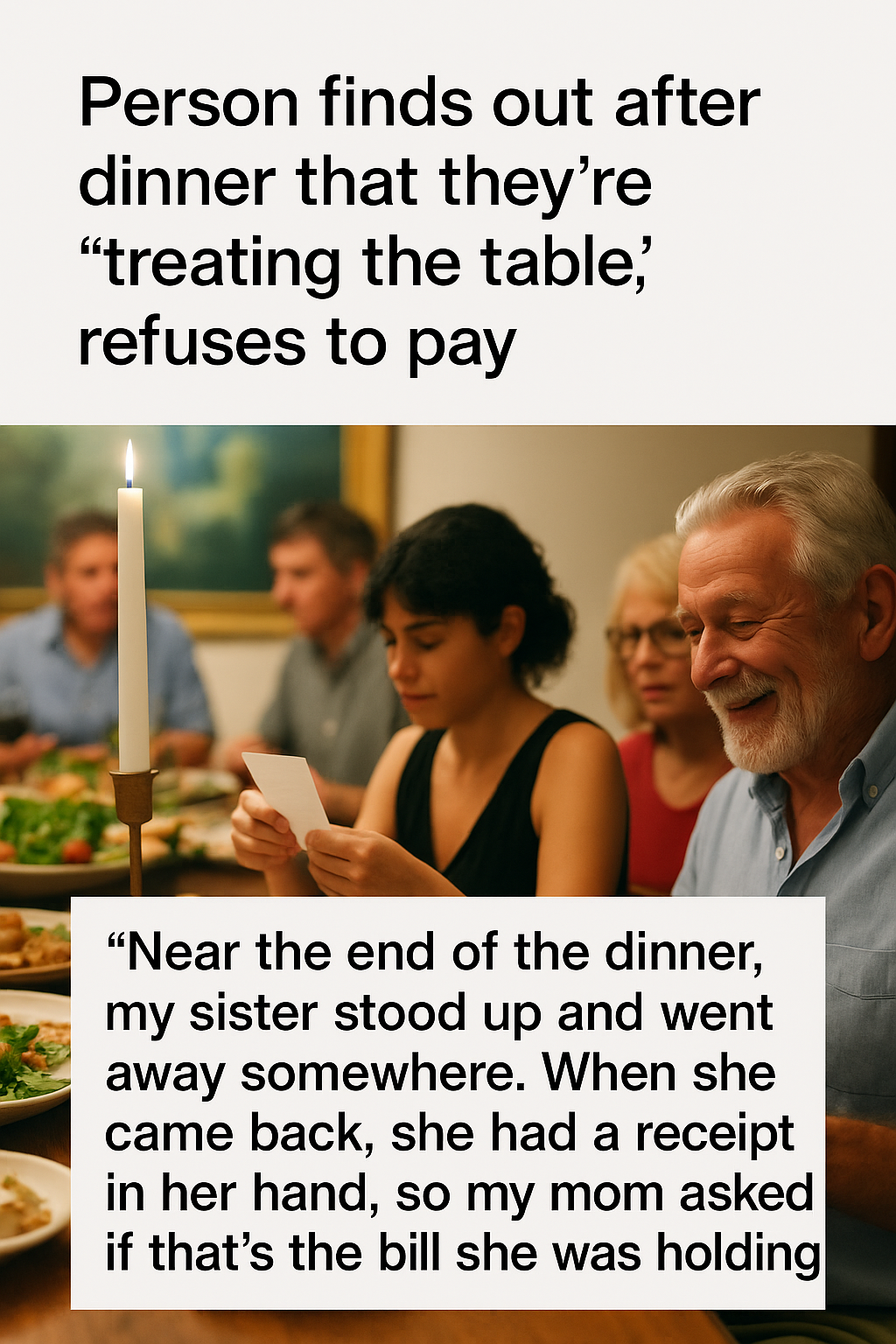 In this particular case, the woman’s confusion stemmed from a lack of clear communication beforehand. Many commenters noted that the sister’s announcement came quite late in the meal, leaving little time for others to adjust expectations. Some sympathized with the woman, saying she should not have been blindsided with such a responsibility without prior discussion.