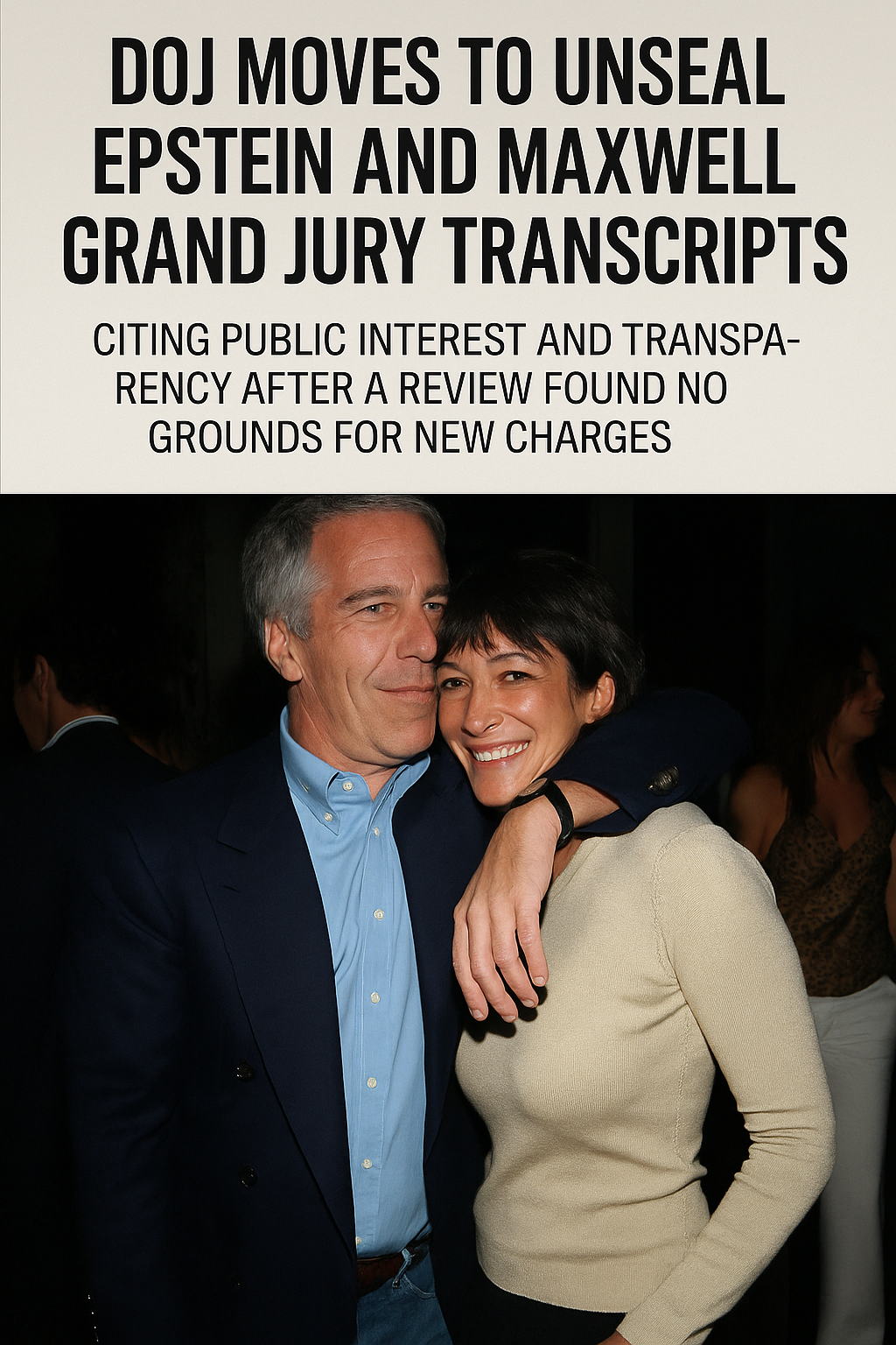 The Department of Justice (DOJ) has filed a motion to unseal the grand jury transcripts related to the high-profile cases of Jeffrey Epstein and Ghislaine Maxwell. This significant development comes after an extensive review concluded that there are no grounds to pursue new charges in connection with the widely scrutinized investigations. The DOJ emphasized the importance of public transparency and the public’s right to understand the contours of these closed proceedings.