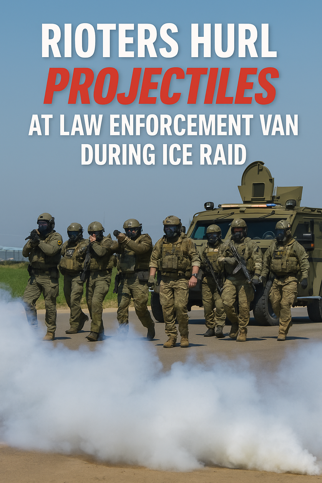 A tense and chaotic scene unfolded recently during an immigration enforcement operation targeting a marijuana cultivation site allegedly staffed by illegal immigrants. Dramatic video footage circulating on social media captures rioters aggressively hurling objects at law enforcement vehicles, highlighting the volatility and intensity of the confrontation.