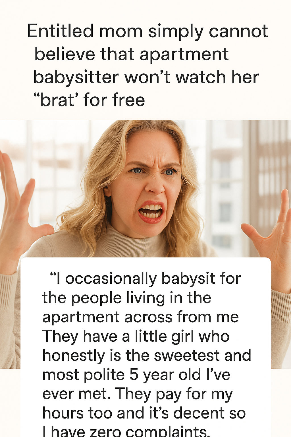 Despite these polite boundaries, the mother reportedly reacted with disbelief and entitlement, unable to accept that the babysitter’s time and effort have a cost. This attitude has ignited conversations about appropriate expectations regarding unpaid labor, especially in childcare, where trust and professionalism are critical.