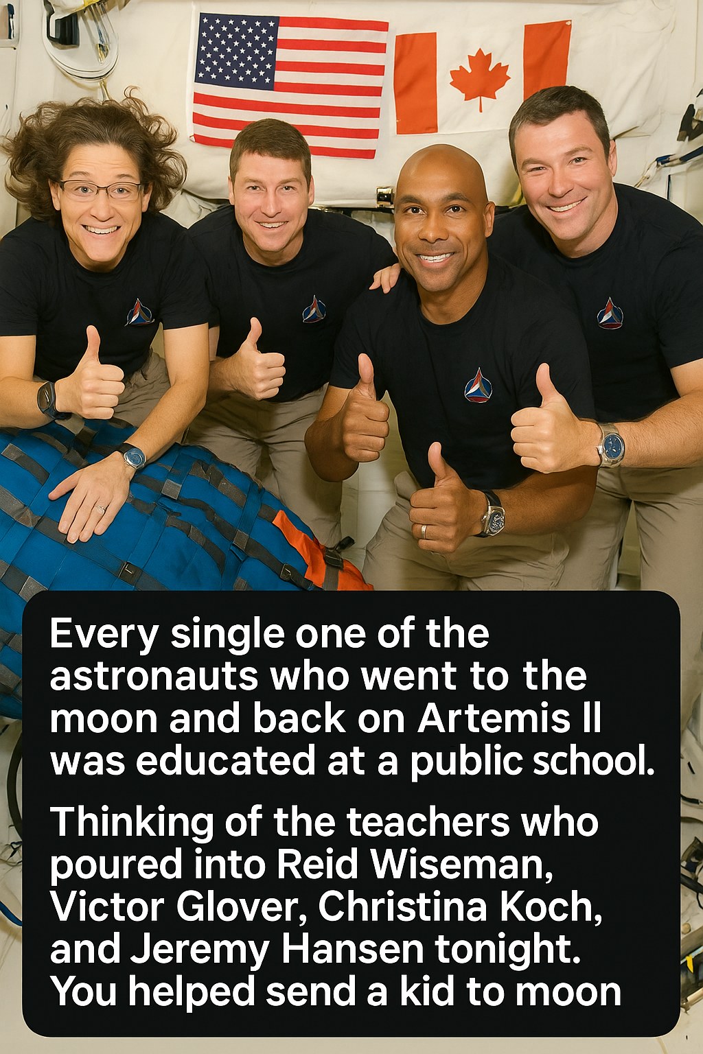 As NASA’s Artemis II mission prepares to send astronauts to the Moon and back, an inspiring fact about the crew is capturing the public’s attention: every single astronaut was educated at a public school.