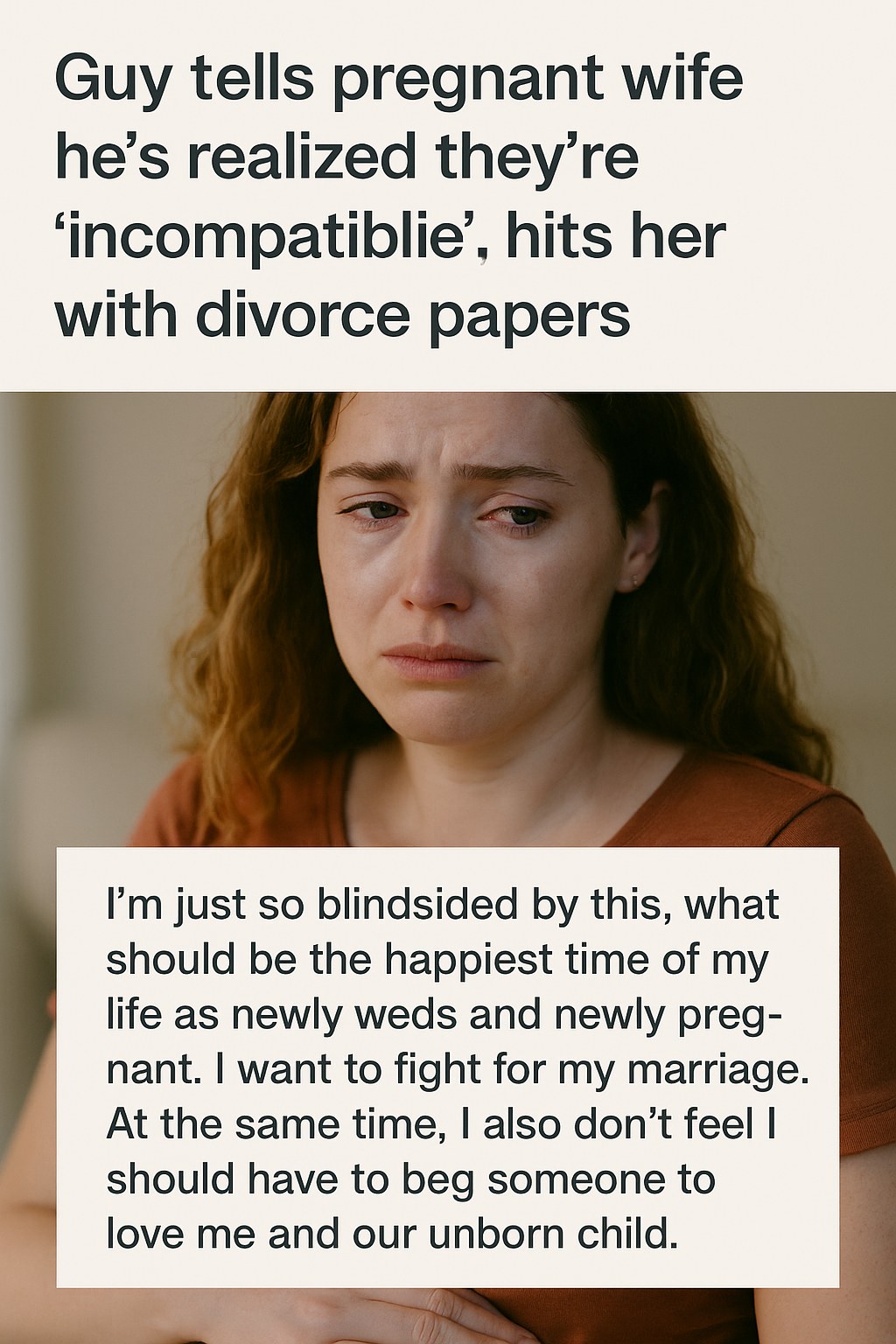 In a shocking turn of events, a heart-wrenching story has taken over social media as a husband blindsides his pregnant wife with divorce papers, citing “incompatibility” as his reason for the split. The emotional incident, which has gone viral, has elicited a wave of sympathy and outrage from users across various platforms.