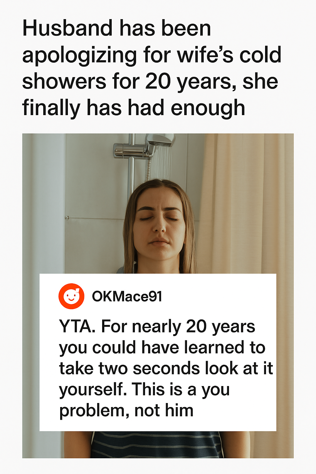 In a story that has captured the attention and amusement of social media users worldwide, a husband’s decades-long habit of apologizing for his wife’s cold showers has finally met its match. After 20 years of what he called “constant apologies” for an everyday domestic inconvenience, the wife has spoken out, revealing a fresh perspective that has sparked widespread conversation about communication, patience, and long-term relationships.