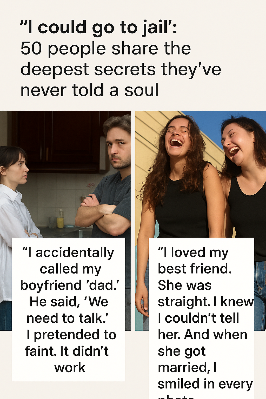 The viral post, accompanied by an evocative image showing five enigmatic individuals alongside the bold caption “I could go to jail: 50 people share the deepest secrets they’ve never told a soul”, ignited a wave of empathy, shock, and curiosity across social media platforms. The post invited users to click through to read stories that often span the spectrum from humorous slip-ups to chilling admissions.