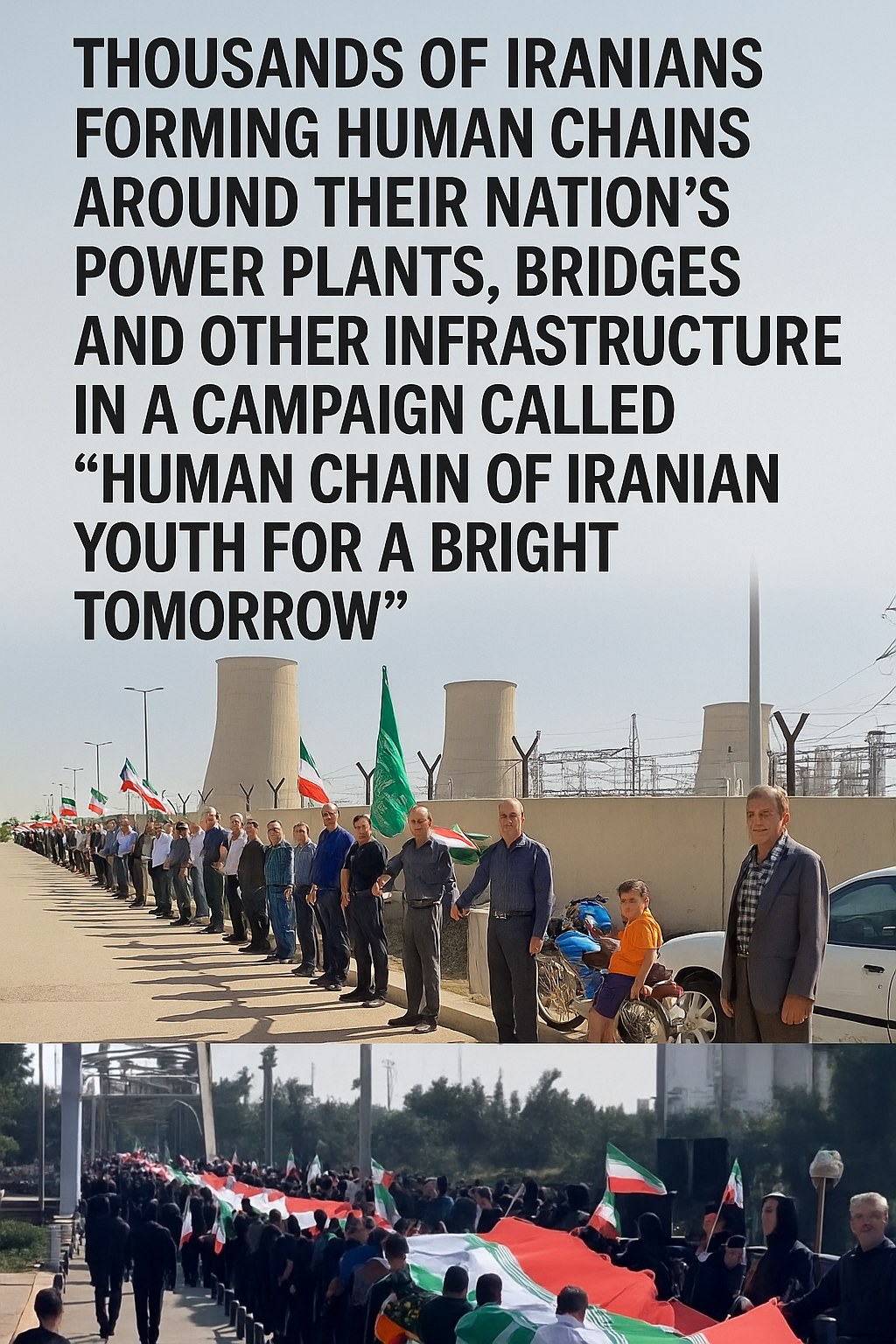 Across Iran today, thousands of young Iranians are joining hands in a powerful display of solidarity, forming human chains around critical infrastructure including power plants, bridges, hospitals, and water treatment facilities. This grassroots movement, known as the “Human Chain of Iranian Youth for a Bright Tomorrow,” reflects the courage and resilience of ordinary people standing together to safeguard the lifelines of their nation.