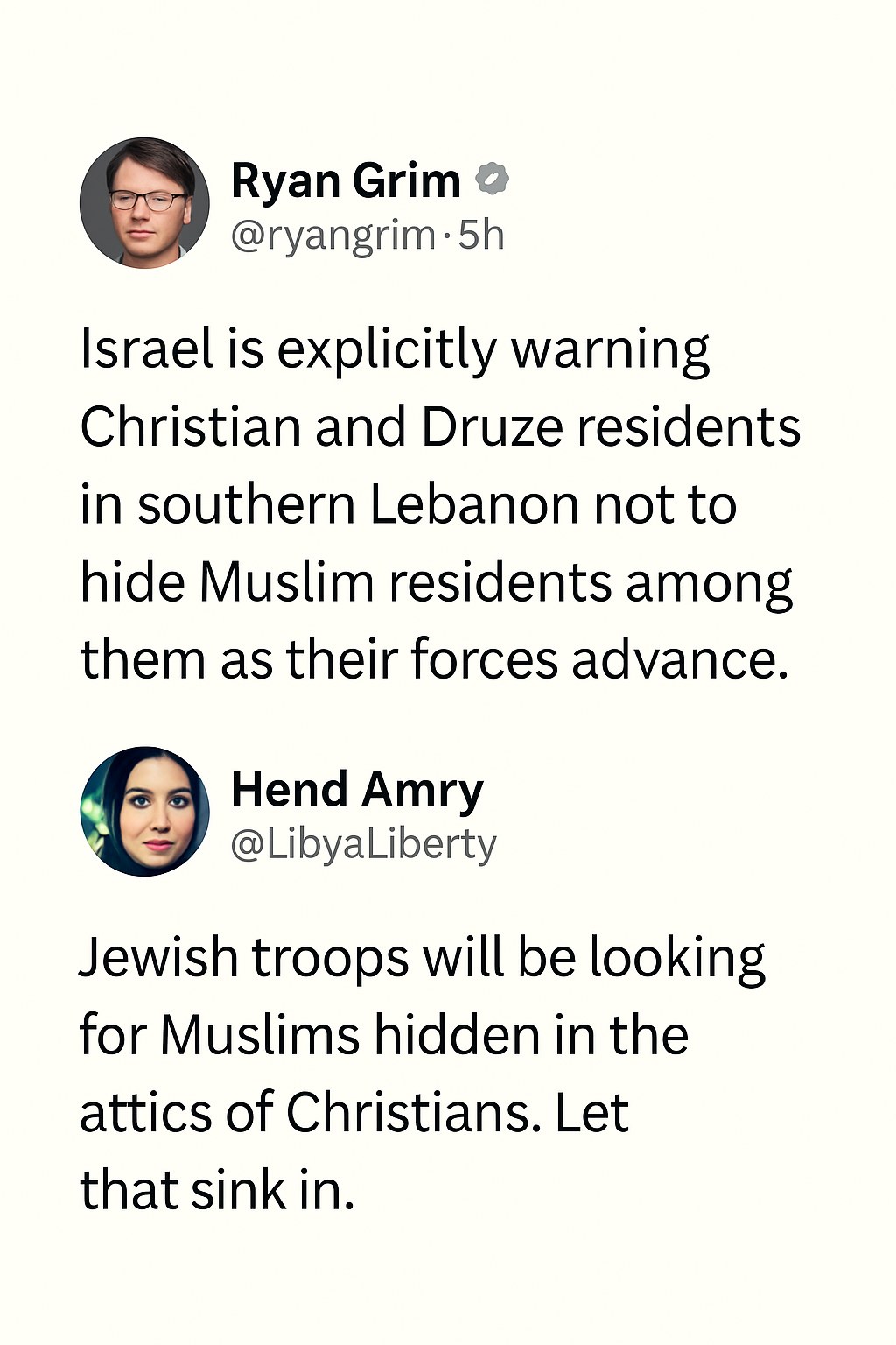Ryan Grim’s tweet succinctly captured the gravity of Israel’s message: “Israel is explicitly warning Christian and Druze residents in southern Lebanon not to hide Muslim residents among them as their forces advance.” This statement has rapidly circulated across social media platforms, spotlighting fears that such instructions could deepen sectarian divides and endanger vulnerable populations.