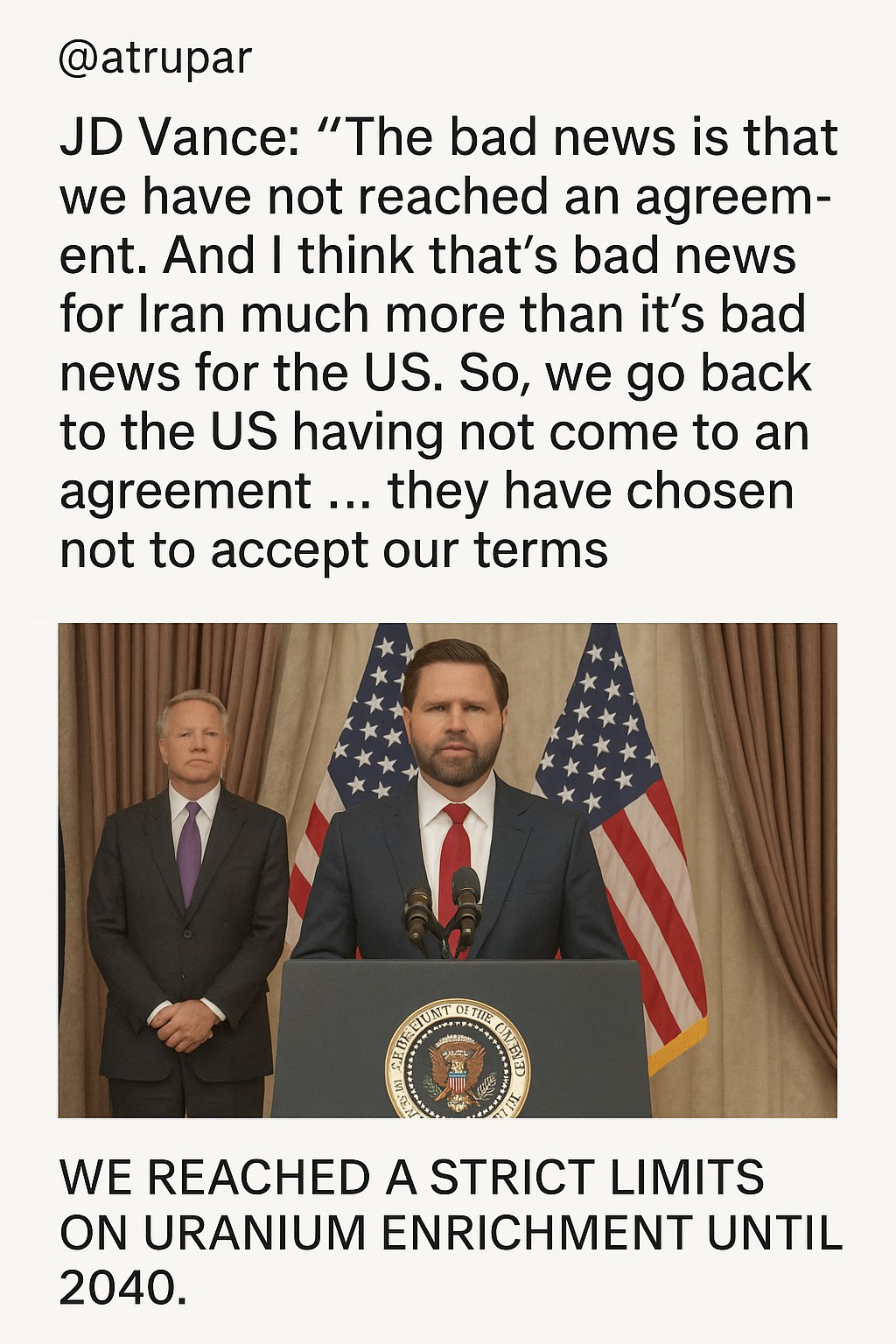 In a recent comment that has captured attention across social media and political circles, Republican Senate hopeful JD Vance highlighted the implications of the ongoing deadlock in U.S. negotiations over the Iran nuclear deal. Speaking from what appeared to be the Oval Office or a similarly symbolic setting, Vance stated, “The bad news is that we have not reached an agreement. And I think that’s bad news for Iran much more than it’s bad news for the United States.”