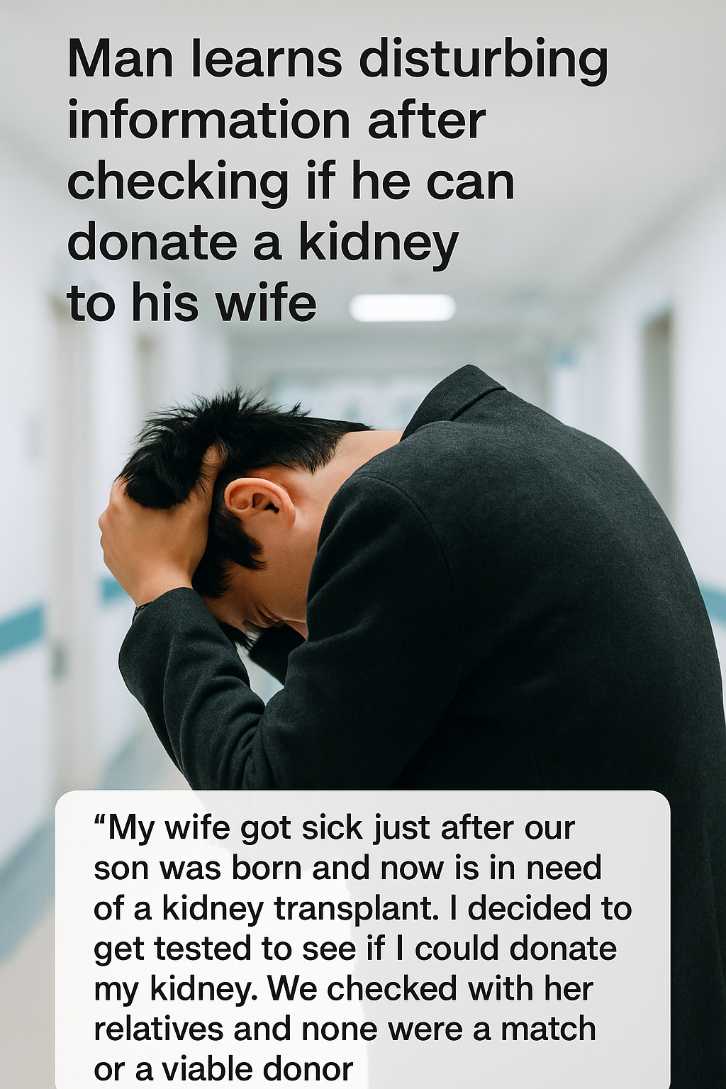 In a poignant turn of events, a man hoping to donate a kidney to his wife has uncovered deeply unsettling information that has added complexity to an already harrowing family ordeal. The wife, who became critically ill shortly after the couple’s newborn son arrived, has been battling a severe kidney condition prompting the husband to explore living-donor transplantation as a potential lifeline.