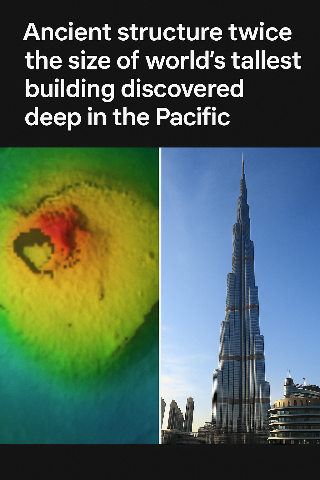 In an astonishing underwater discovery, researchers have uncovered an immense ancient structure buried deep in the Pacific Ocean, measuring twice the height of the world’s tallest building, the Burj Khalifa. This enigmatic formation, located thousands of meters below the ocean surface, is sparking intense curiosity about ancient civilizations and geological history in one of the least explored regions on Earth.
