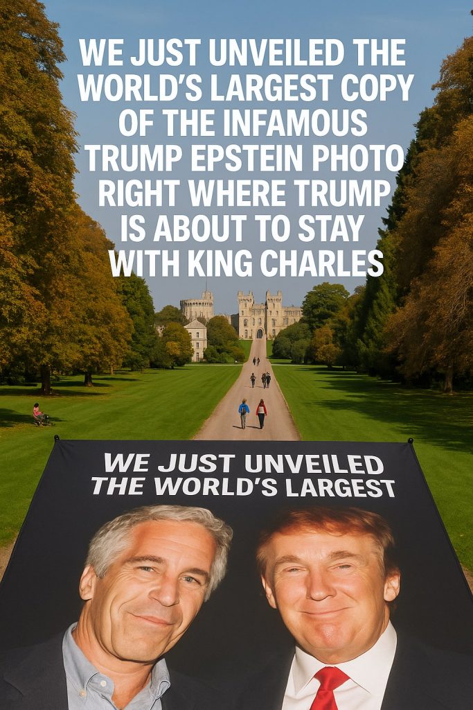 In a bold move aimed at highlighting controversial ties between former President Donald Trump and the late financier Jeffrey Epstein, activist group ‘Everyone Hates Elon’ has unveiled what they claim to be the world’s largest copy of the infamous photograph featuring the two men. The photo was strategically showcased just days before Trump is set to stay with King Charles III at the royal residence in London.