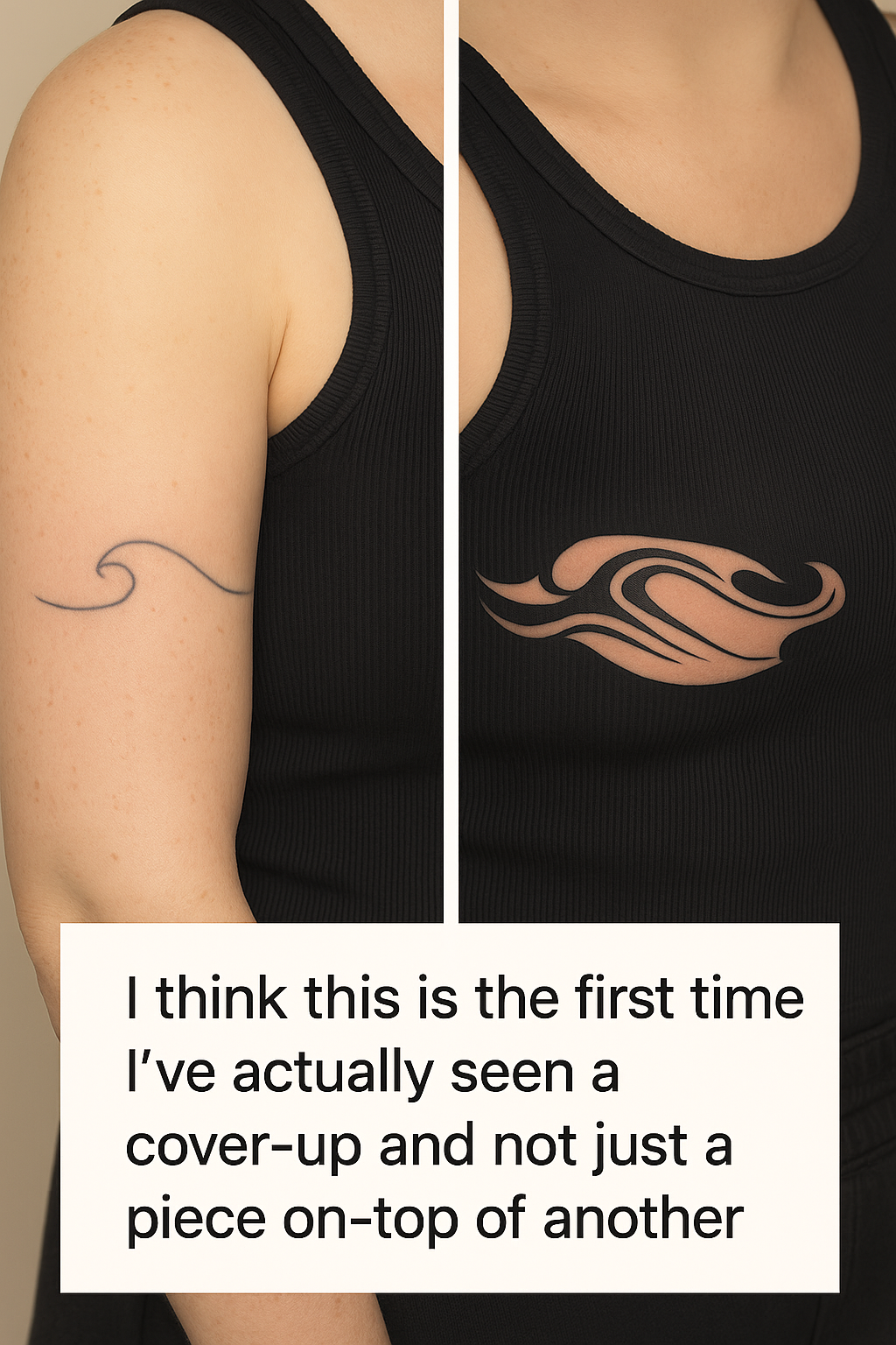 “Tattoo fails don’t have to define you,” the artist shared in a recent interview. “My goal is to give people a fresh start and show that skin is a canvas — mistakes can become masterpieces if you know how to handle them.”