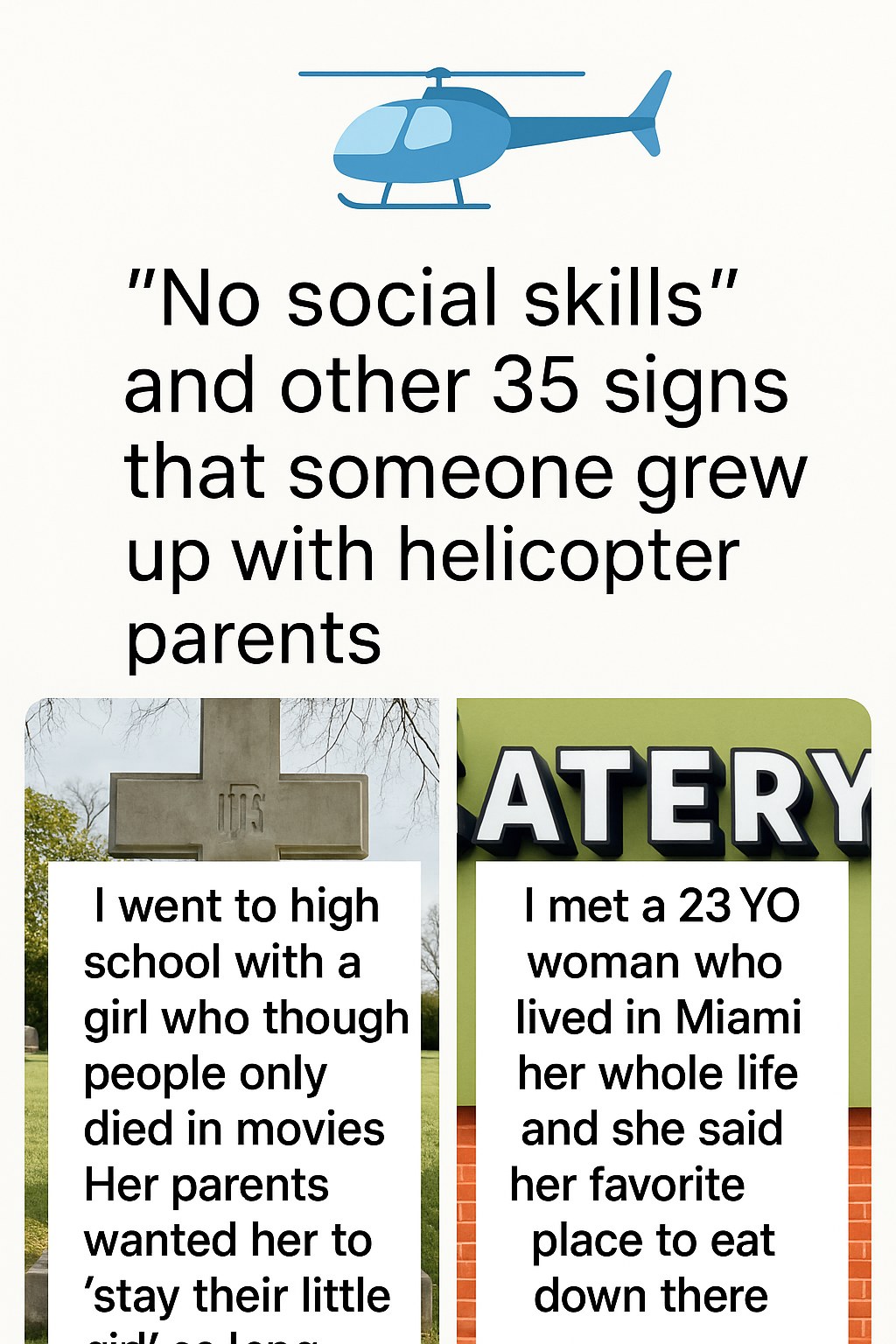 Experts and psychologists note that the 23-year-old Miami woman’s struggles mirror a broader pattern. Below are some of the 35 signs that someone may have grown up with helicopter parents, based on compiled behaviors, social observations, and recent psychological research: