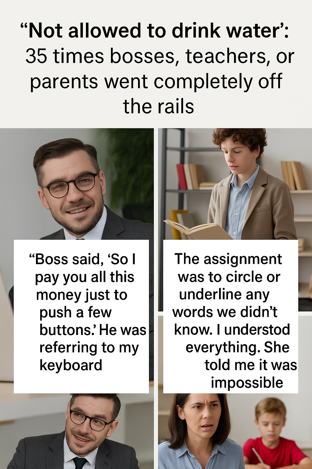 What might seem like an exaggeration or an old workplace cliché has become all too real for many. Across social media platforms, users have shared more than 30 documented experiences where supervisors or guardians took the controversial stance of prohibiting water breaks, causing discomfort, health risks, and sometimes even disciplinary actions. These accounts have been strikingly similar across various environments—from offices to classrooms to homes—exposing an alarming pattern of neglecting employee, student, or child well-being in favor of rigid control or misguided productivity concerns.