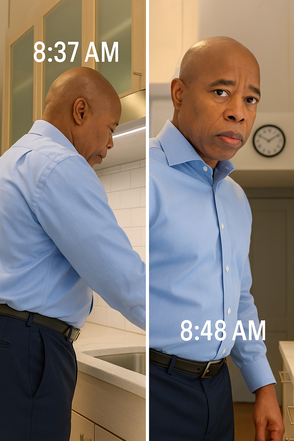 In the clip, the mayor is seen engaging in his usual early-morning regimen, which reportedly involves exercise, meditation, and healthy eating, all components designed to emphasize his commitment to wellness and productivity. However, what captured the public’s attention was an awkward segment in which Adams appeared to struggle while performing yoga poses, accompanied by a voiceover that many users found forced and overly scripted.