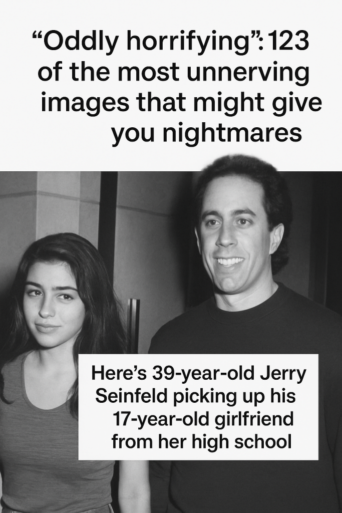 One particularly curious highlighted image—sparking its own wave of conversation—involves a seemingly innocent snapshot of a younger Jerry Seinfeld. The photo shows a 39-year-old Seinfeld beside a 17-year-old, an enigmatic visual that adds to the compilation’s unsettling aura. While on the surface it appears mundane, the juxtaposition and context have generated diverse interpretations. Such images exemplify how familiar faces placed in odd contexts can amplify feelings of unease.