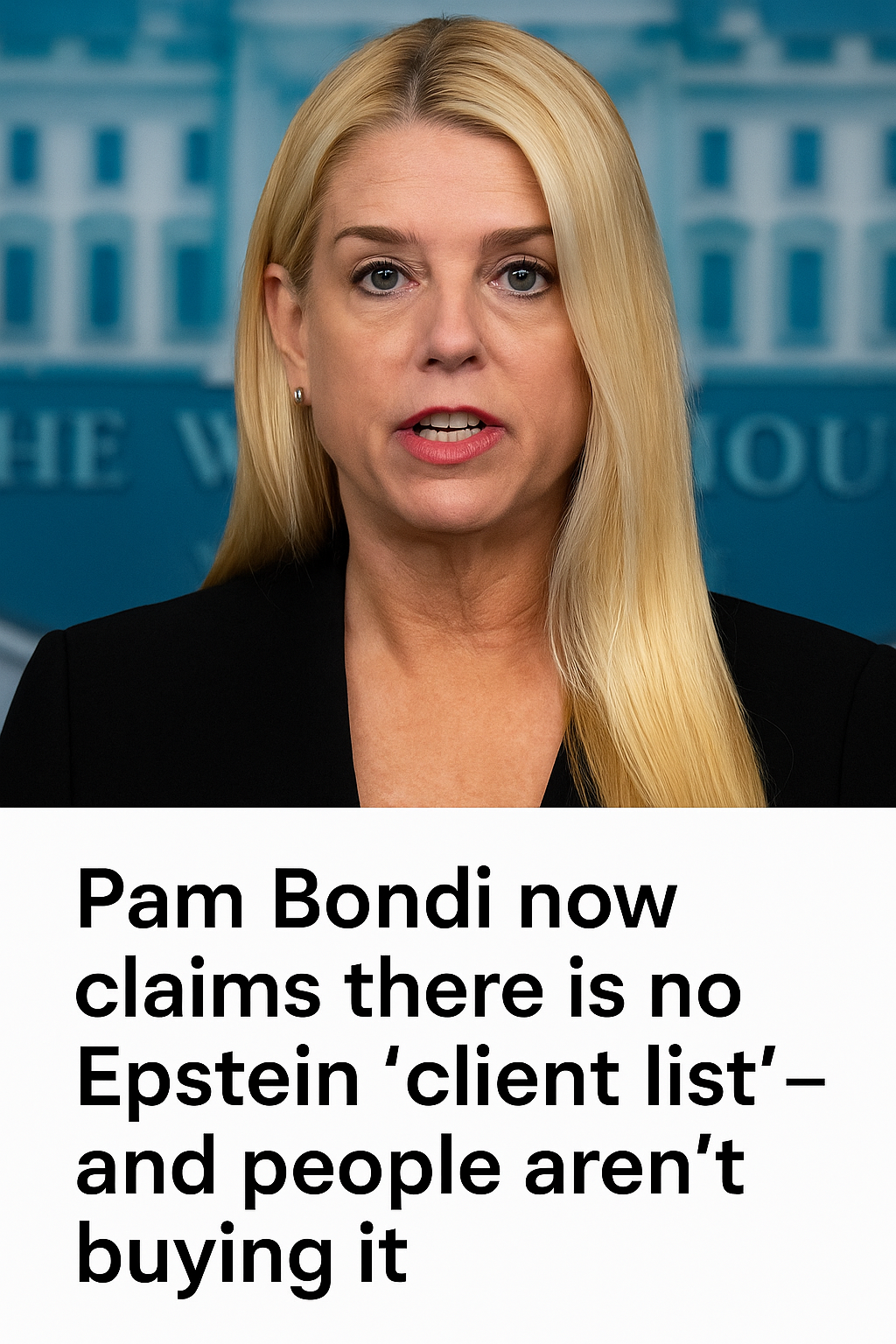 - Pam Bondi, former Attorney General, denies existence of an Epstein “client list.”