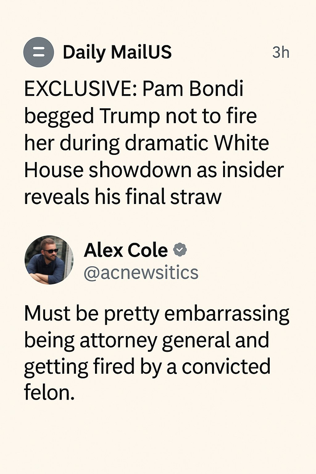 - Pam Bondi begged Trump not to fire her during White House showdown – Daily Mail US
