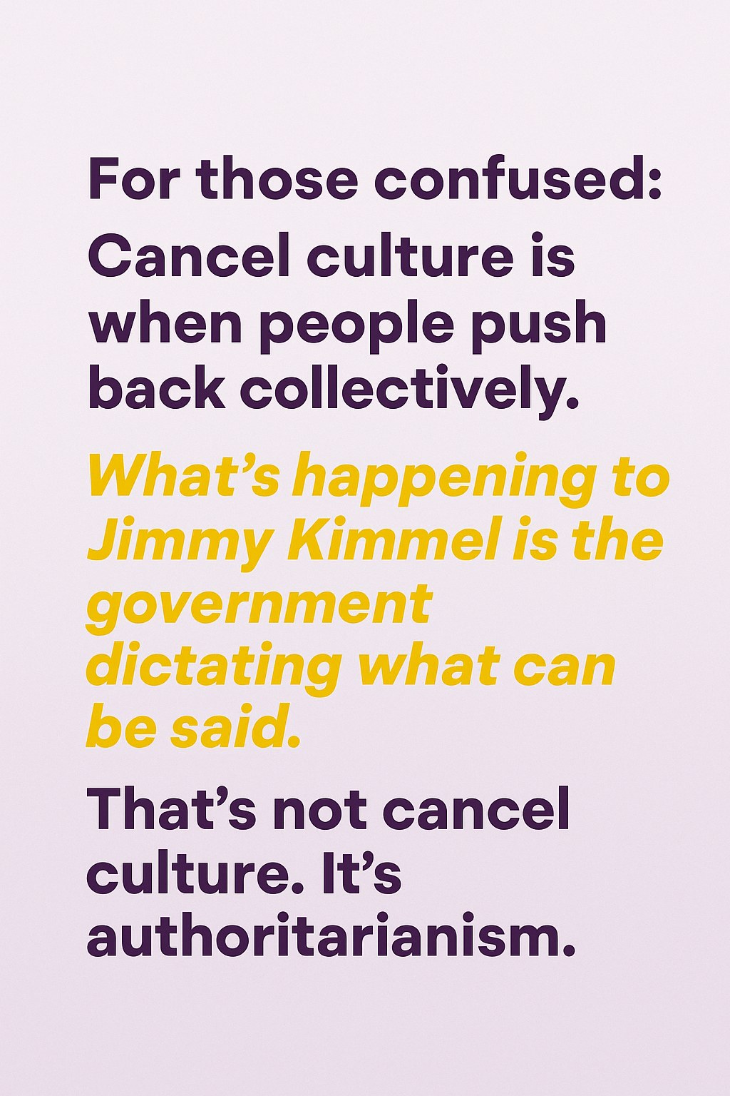 Joel Bervell, a prominent voice in the #BringBackKimmel movement, characterized the situation with a defining commentary on social media: “Cancel culture is when people push back collectively. What’s happening to Jimmy Kimmel is the government dictating what can be said.” His comments resonate with many who feel this is not just about one late-night host but a broader concern regarding censorship.