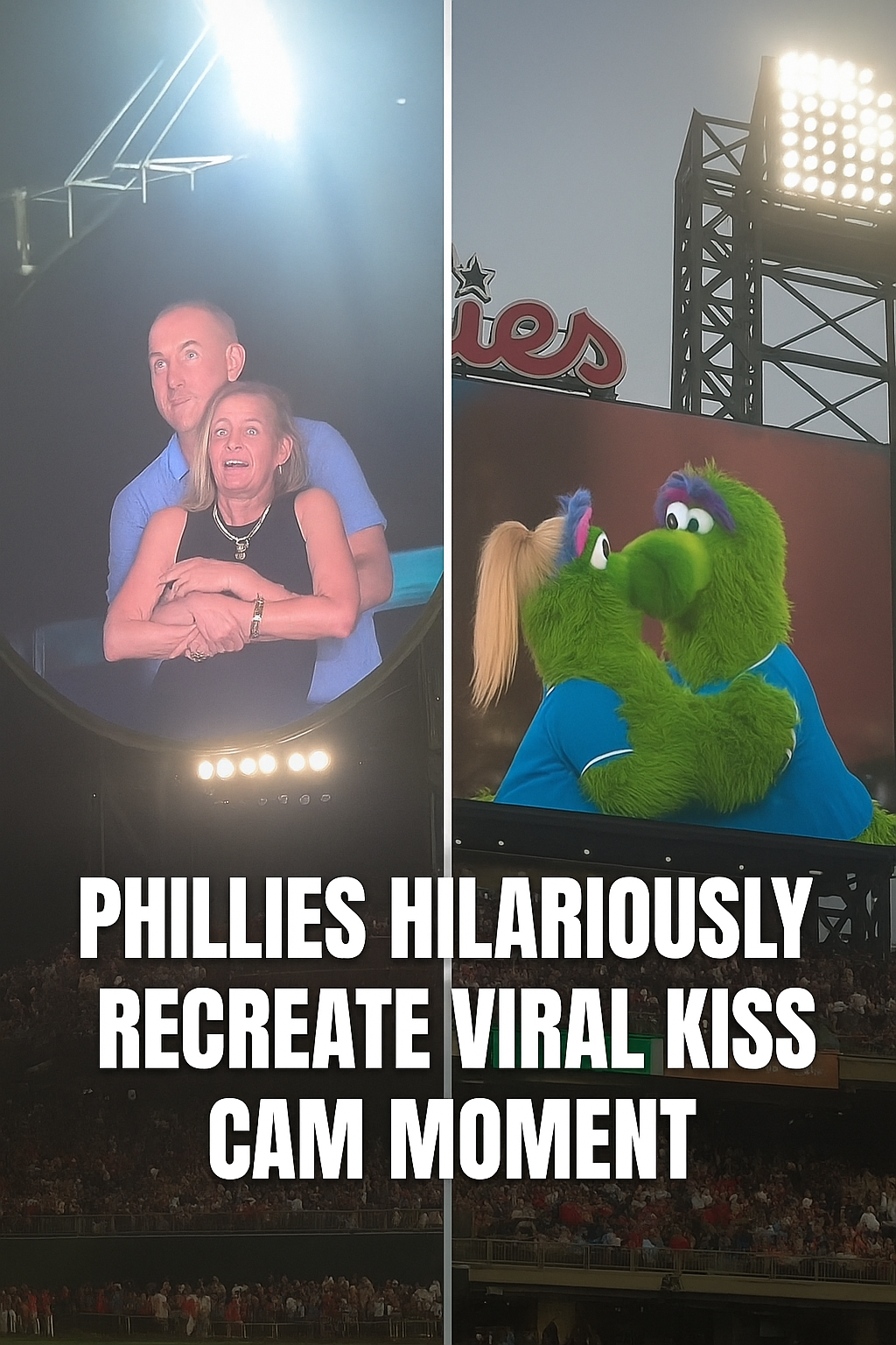 Philadelphia’s iconic Phillie Phanatic mascots brought a wave of unexpected joy and laughter to fans during a recent game, recreating the unforgettable viral “Kiss Cam” moment from Coldplay’s 2024 concert. The playful stunt quickly turned into one of the day’s highlights, captivating the stadium and spreading cheer across social media.