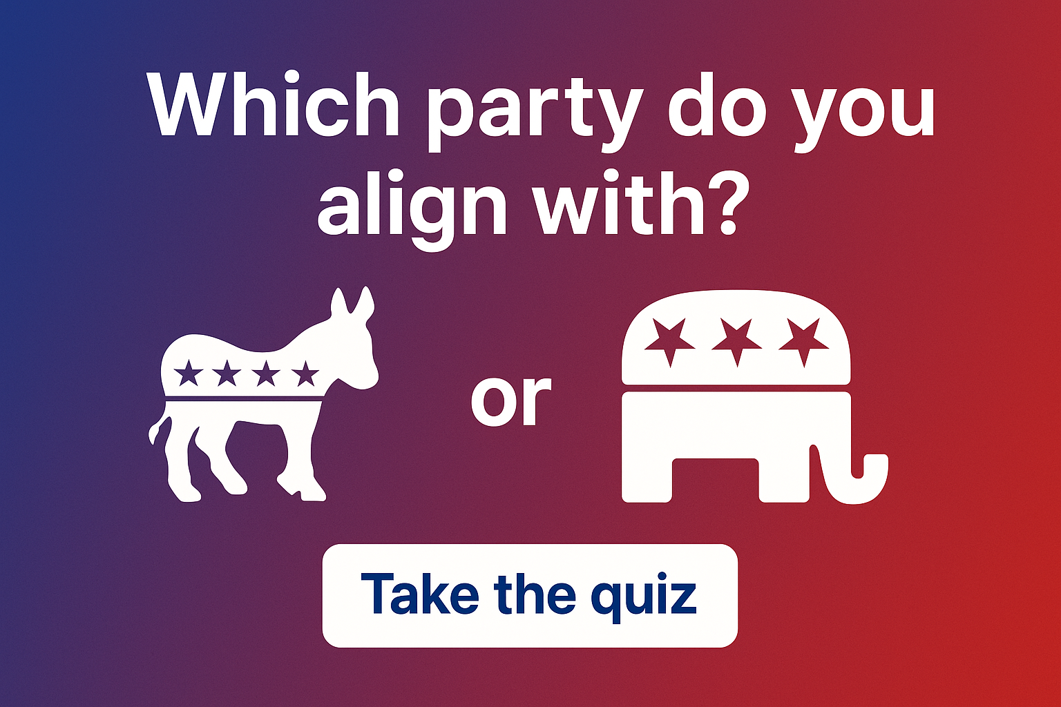 Politics can feel complicated, but your personal opinions say a lot. This quick 12-question quiz will show you how closely your answers align with Democratic or Republican perspectives. Answer each question honestly and see your results in real time — then share your score with friends to compare!