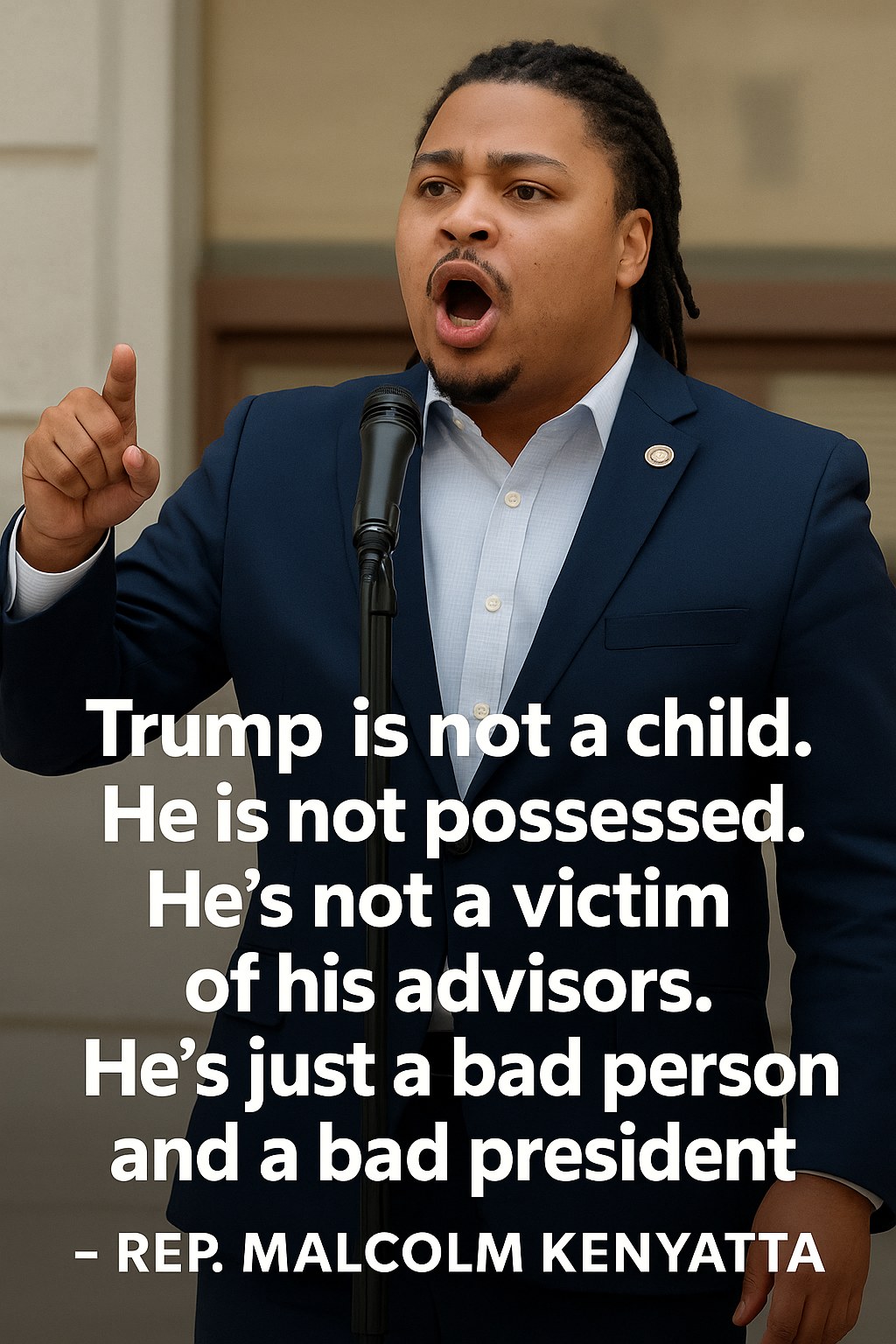 In a brief but powerful social media post that quickly gained traction online, Pennsylvania Congressman Malcolm Kenyatta unleashed a scathing critique of former President Donald Trump, stating bluntly that “Trump is not a child. He is not possessed. He’s not a victim of his advisors. He’s just a bad person and a bad president.” The message has sparked widespread discussion, with many praising Kenyatta’s straightforward assessment amid ongoing debates about Trump’s leadership style and legacy.