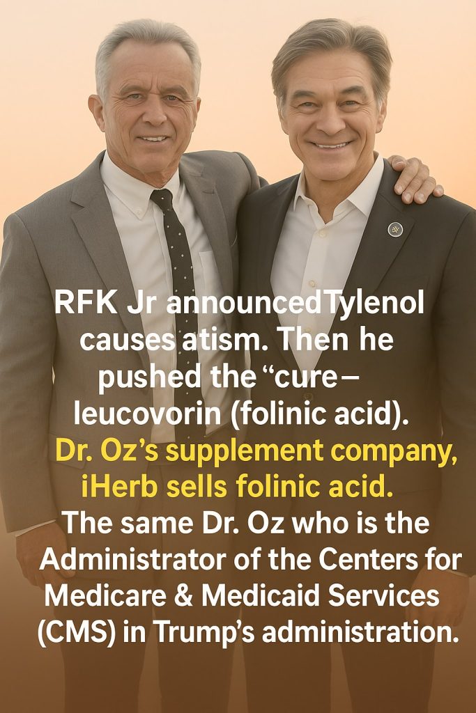 The viral post gained further traction when users discovered that Dr. Mehmet Oz’s supplement company, iHerb, also sells folinic acid products. Critics argue that this interconnection raises ethical questions about the potential profit-driven motives behind RFK Jr.’s statements. The scenario presents a complex web of health misinformation and commercial interests.